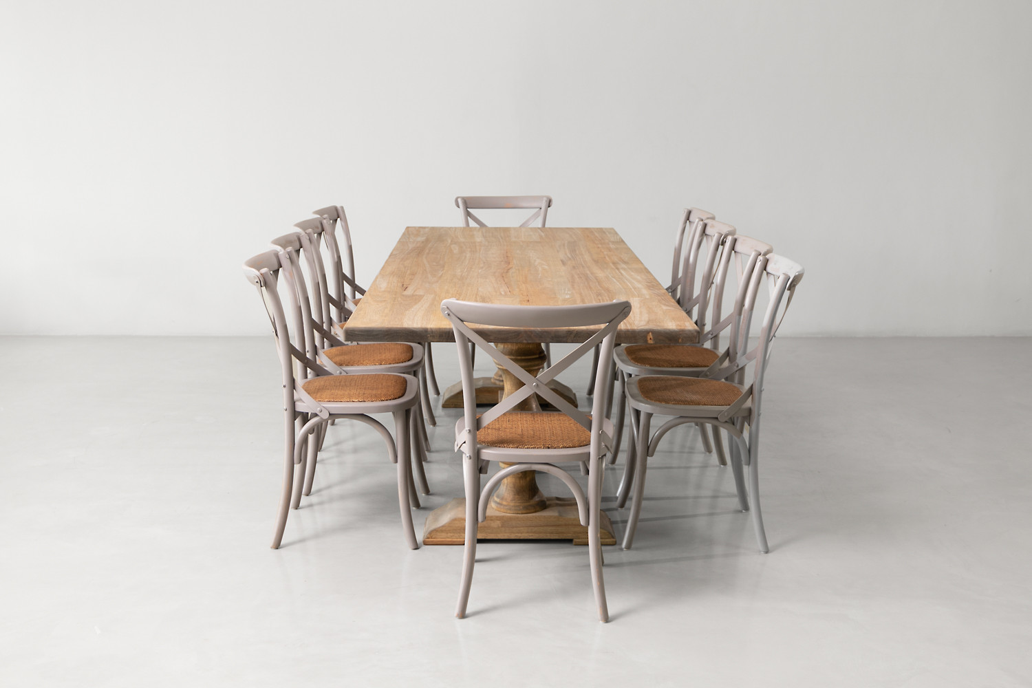 - Dining Table featuring monastery style legs crafted from solid Rubberwood