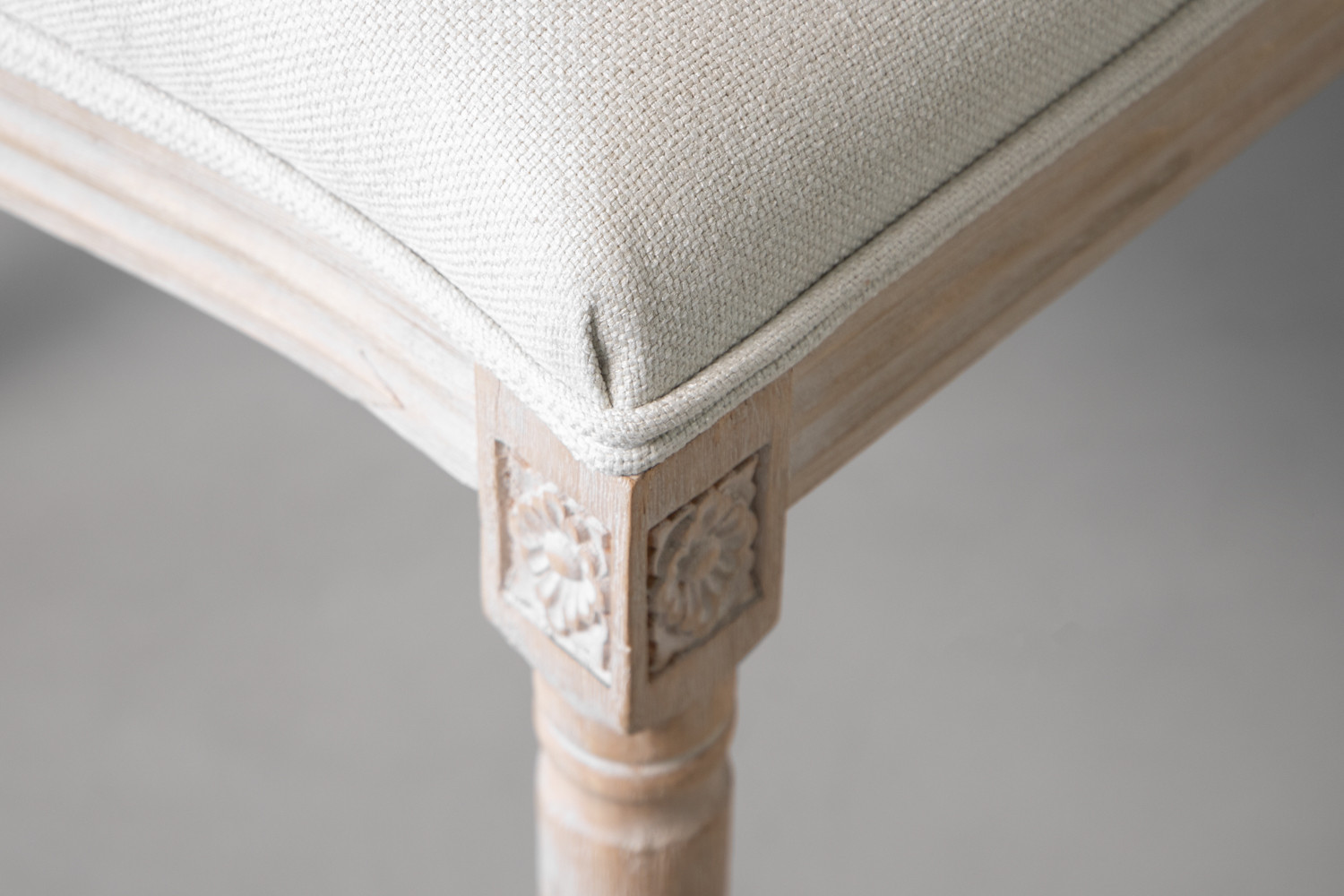 This charming combination features both table and chair crafted from rubberwood. Rubberwood is a sustainable versatile wood known for its durability. The strength of this ultra-environmentally friendly wood means cleaning is a breeze. While the Bordeaux Dining Table features a simple finish, which brings out the unique grain of this wood and produces a slightly weathered look the Olivia Dining Chairs sport a brushed lime wash finish and understated neutral colour palette to add a more relaxed countryside feel.