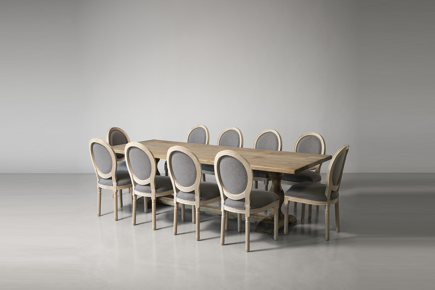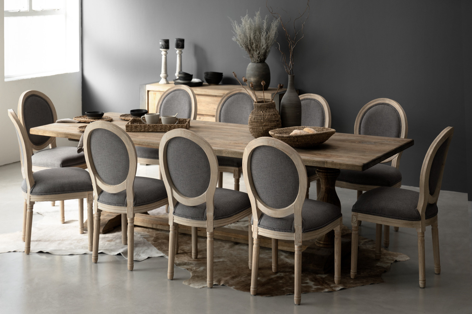 The combination of the Bordeaux Dining Table & Olivia Dining Chairs brings a uniquely classical centre point to your dining room. Crafted from sustainable Rubberwood, the Bordeaux Dining Table produces a welcoming dining experience. The classic French country style Olivia Dining Chair, with its solid Rubberwood frame & medallion back, is the epitome of old-world elegance.