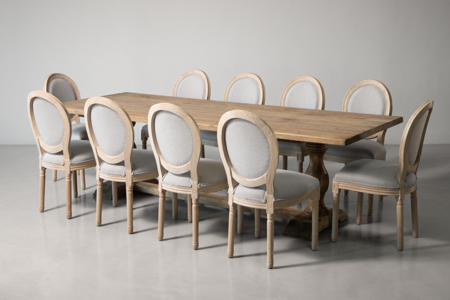 The combination of the Bordeaux Dining Table & Olivia Dining Chairs brings a uniquely classical centre point to your dining room. Crafted from sustainable Rubberwood, the Bordeaux Dining Table produces a welcoming dining experience. The classic French country style Olivia Dining Chair, with its solid Rubberwood frame & medallion back, is the epitome of old-world elegance.