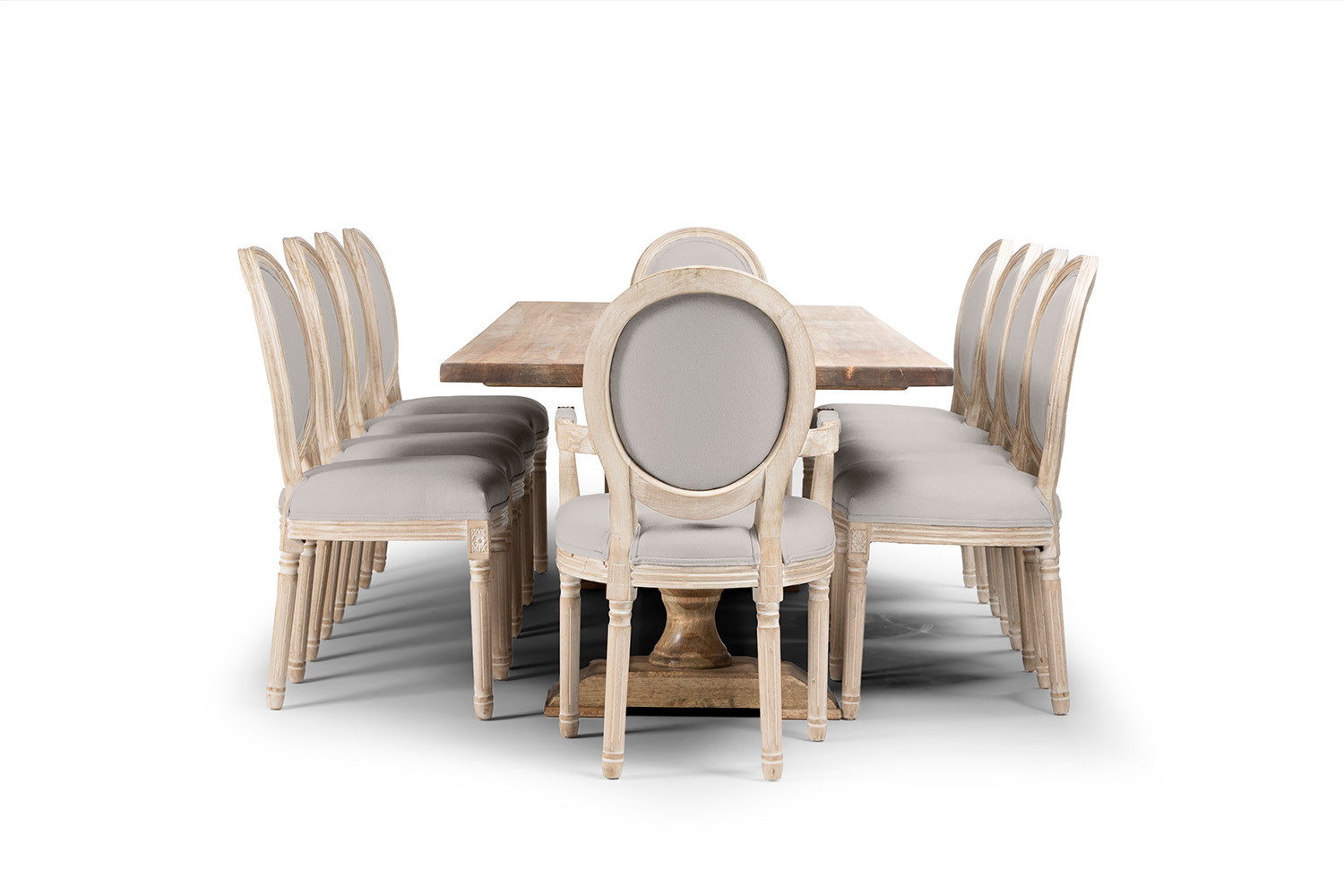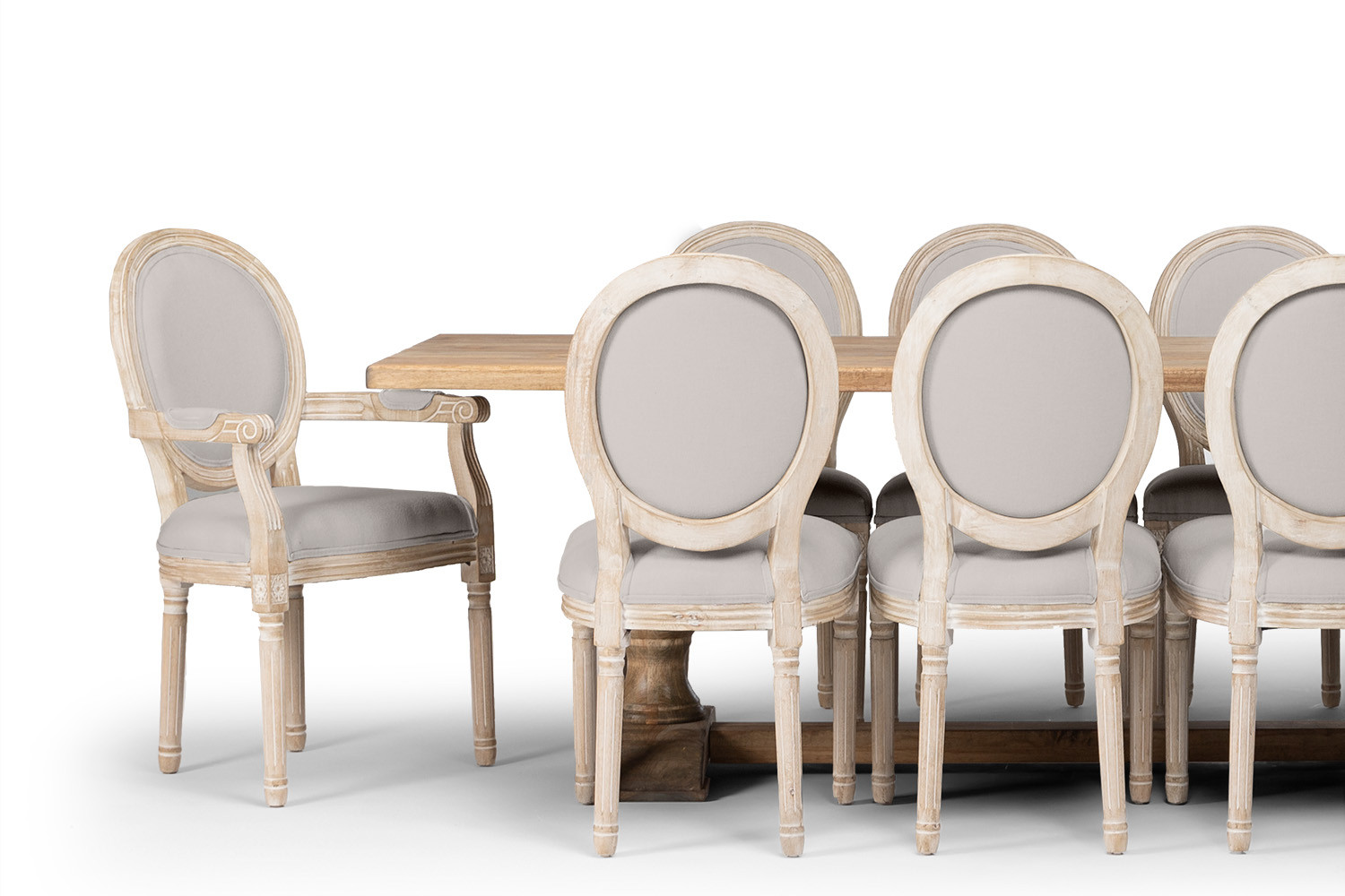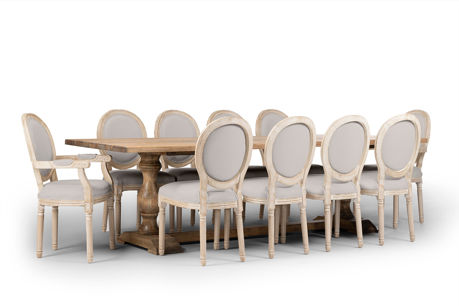 Crafted from sustainable rubberwood, the Bordeaux Dining Table produces a welcoming dining experience while the classic French country style Olivia Dining Chair, with its solid rubberwood frame & medallion back, is the epitome of old-world elegance.