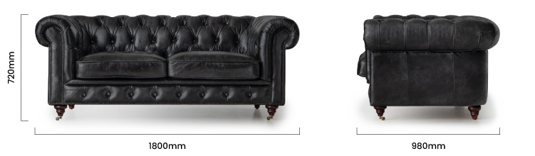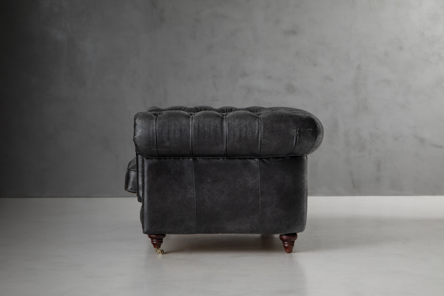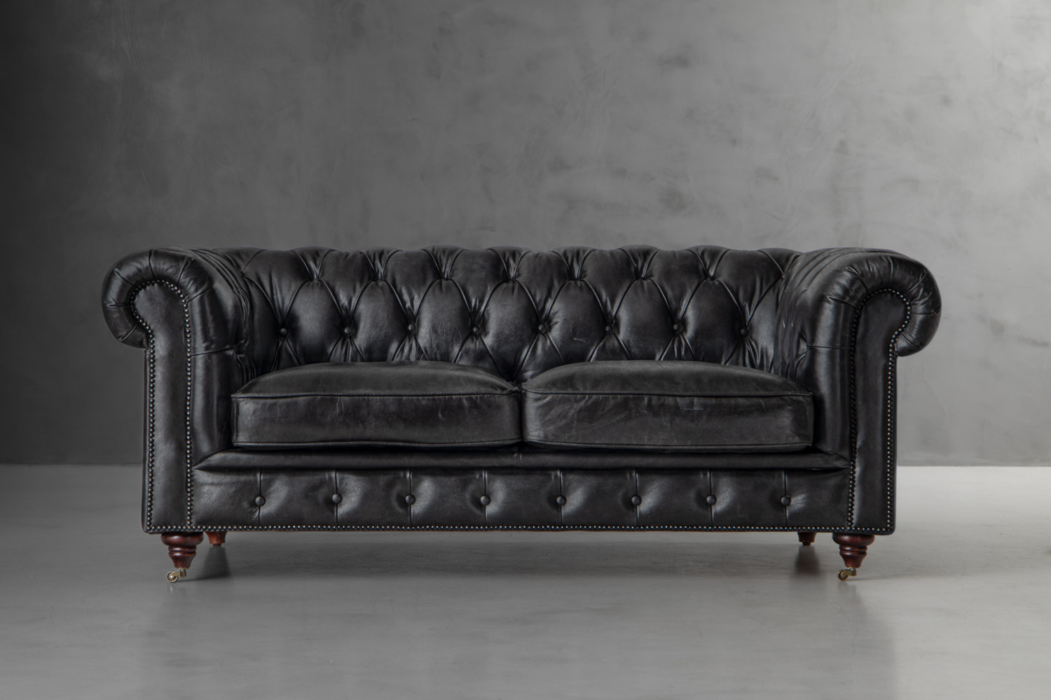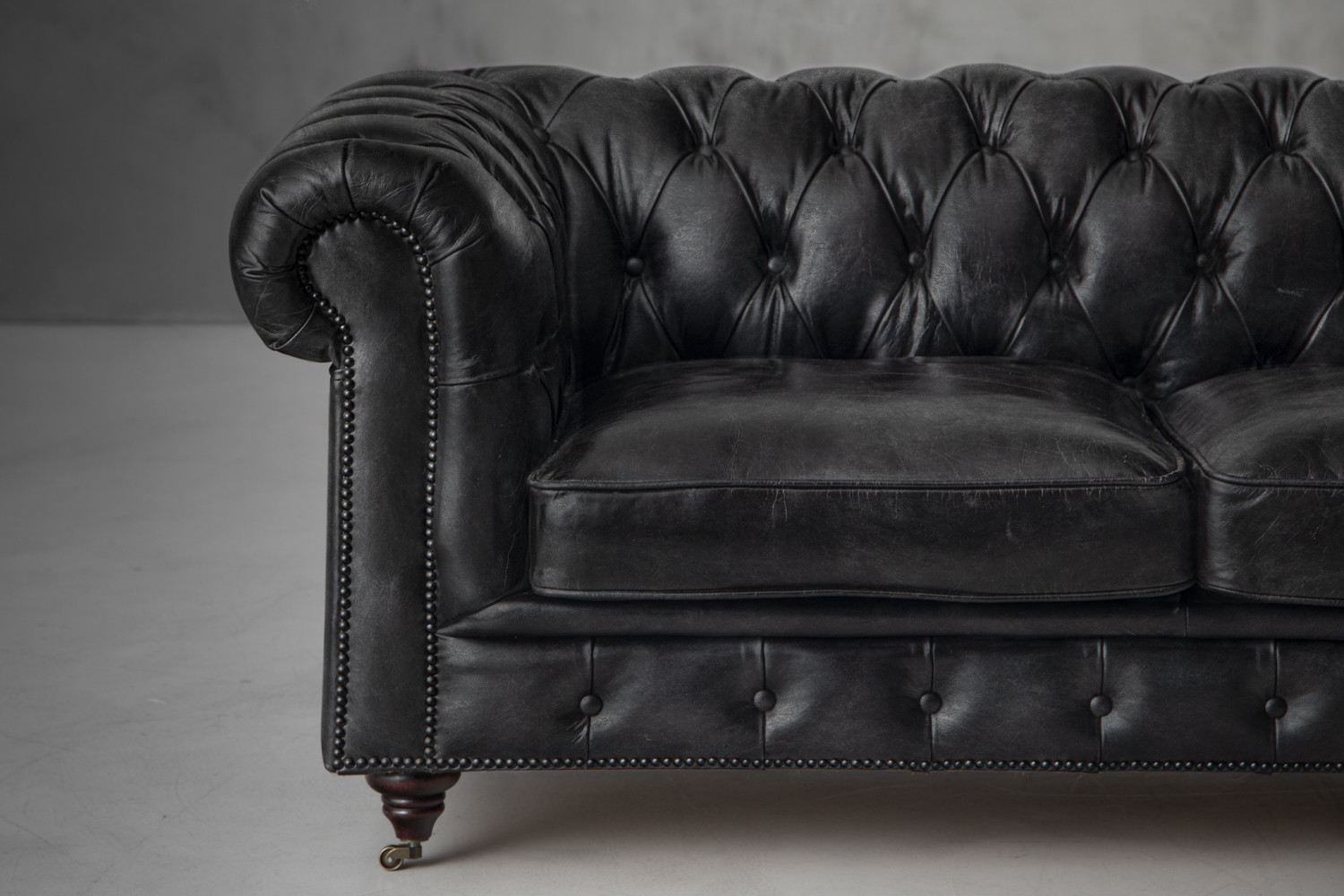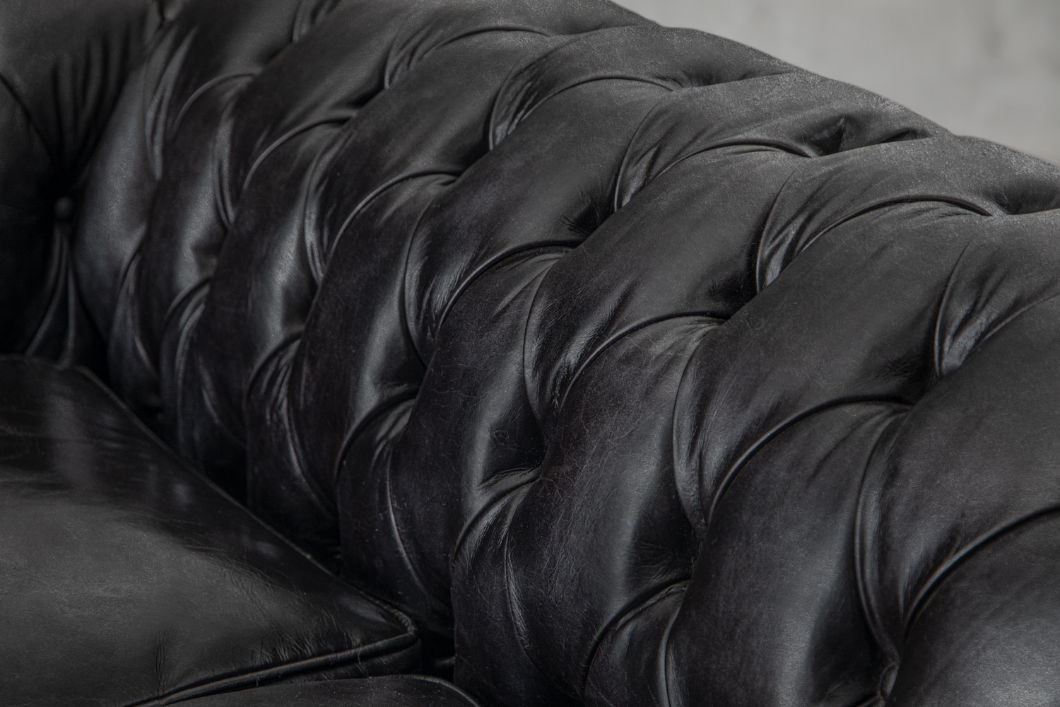 Jefferson Chesterfield 2-Seater Leather Couch - Distressed Black