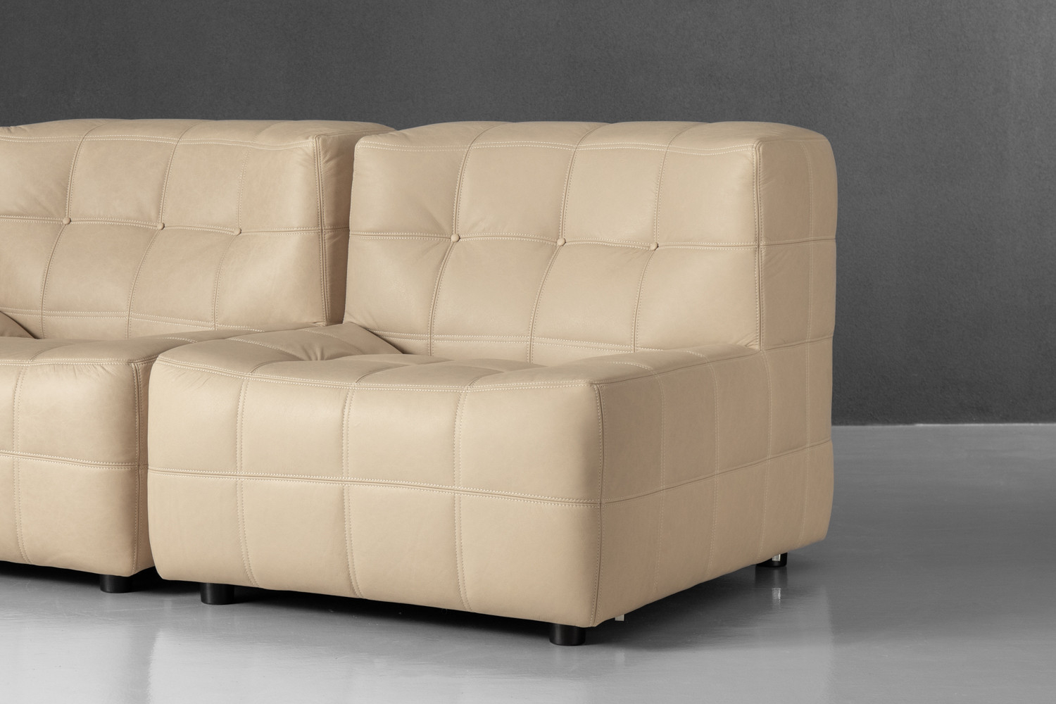 Step up your interior style with the Orson Modular Leather Couch, a perfect blend of sleek modern design and luxurious comfort. Featuring full-grain leather upholstery, the couch's square-patterned finish exudes elegance with its clean lines and inviting presence. Designed for both comfort and functionality, the Orson is a versatile modular set made for modern living.