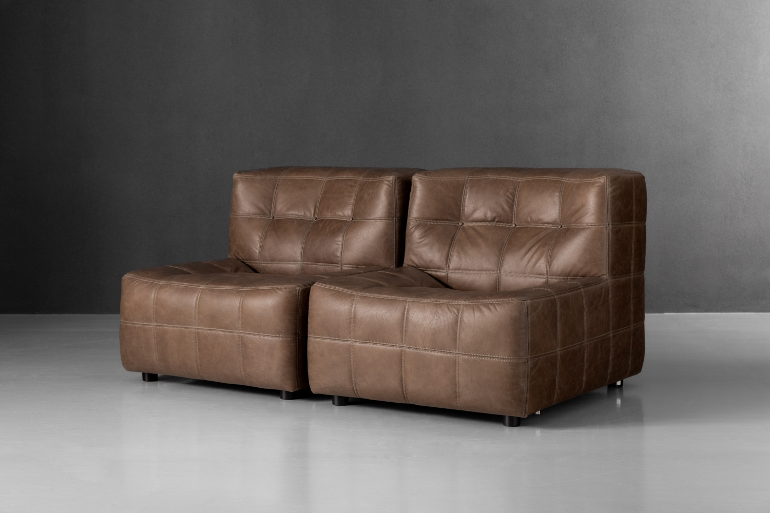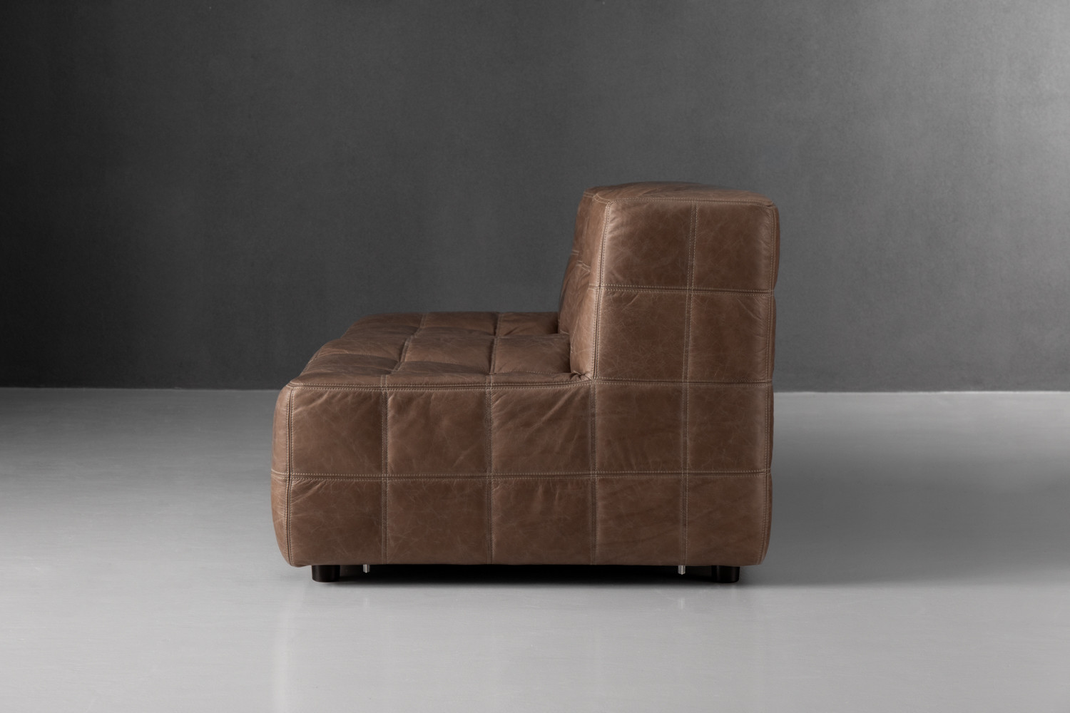 Step up your interior style with the Orson Modular Leather Couch, a perfect blend of sleek modern design and luxurious comfort. Featuring full-grain leather upholstery, the couch's square-patterned finish exudes elegance with its clean lines and inviting presence. Designed for both comfort and functionality, the Orson is a versatile modular set made for modern living.