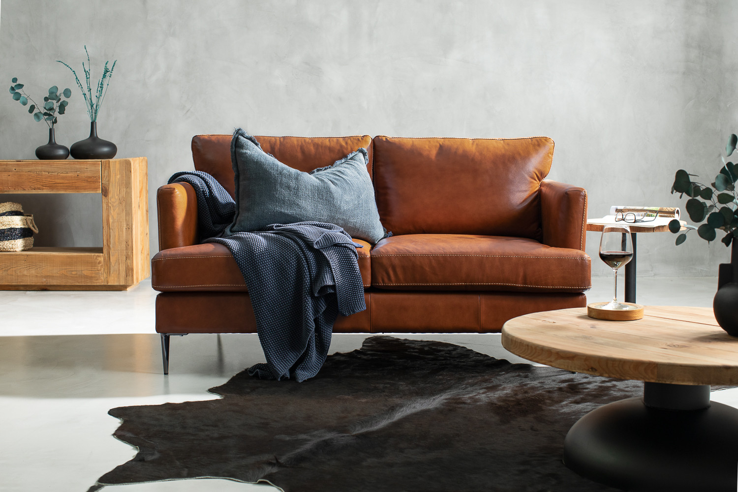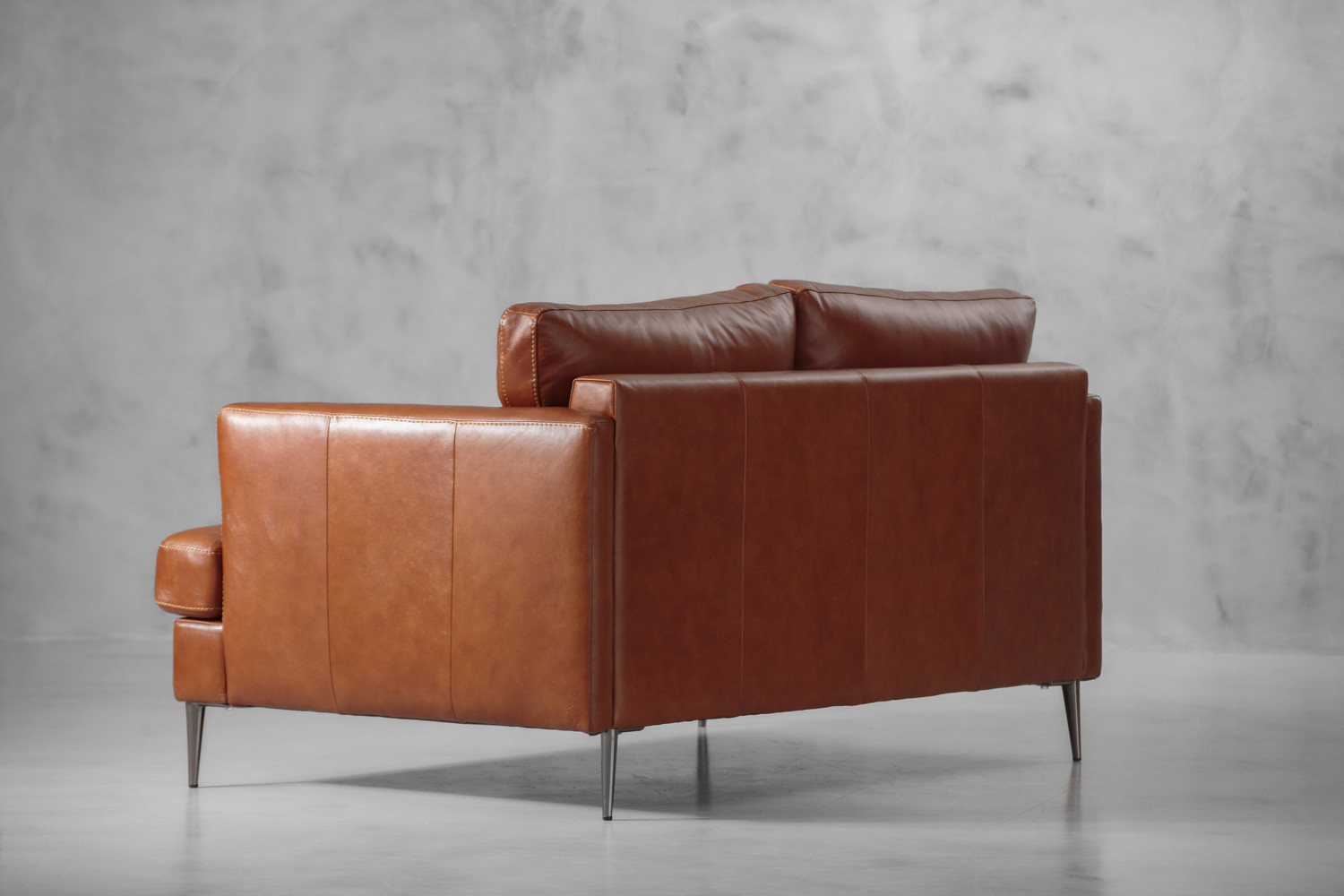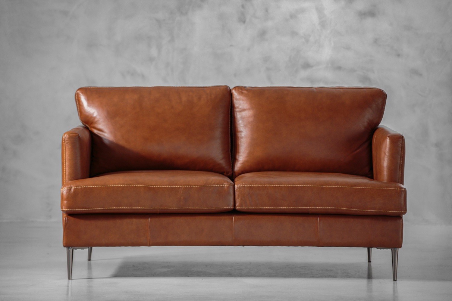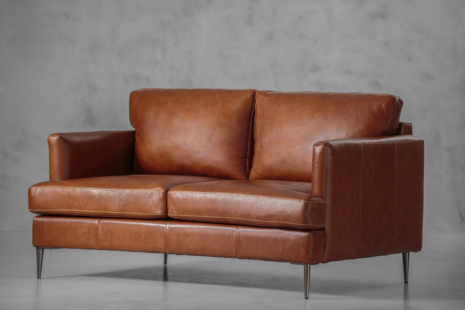 The Remington 2-Seater Leather Couch features a sleek silhouette upholstered in full grain leather. The couch includes some intricate design elements, such as exposed stitching and slim arms, which adds to the airy modern look and feel. Perched upon beautiful mild steel legs, the Remington couch is designed to sit at a comfortable height while creating a beautiful piece of furniture which is sure to add a touch of style and class to your home.