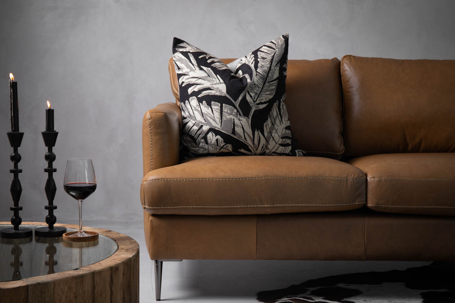 The Remington 2-Seater Leather Couch features a sleek silhouette upholstered in full grain leather. The couch includes some intricate design elements, such as exposed contrast stitching and slim arms, which adds to the airy modern look and feel. Perched upon beautiful mild steel legs, the Remington couch is designed to sit at a comfortable height while creating a beautiful piece of furniture which is sure to add a touch of style and class to your home.