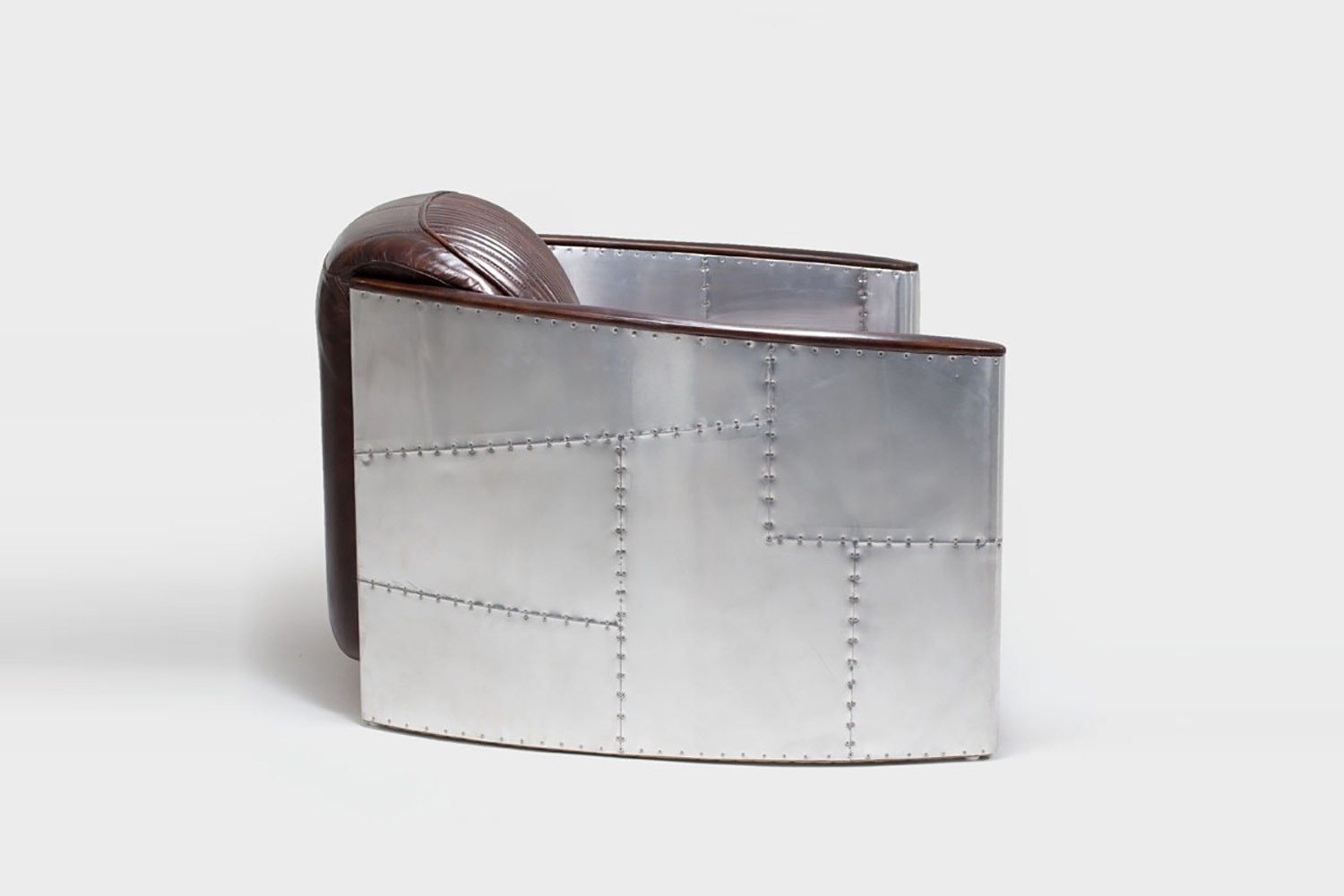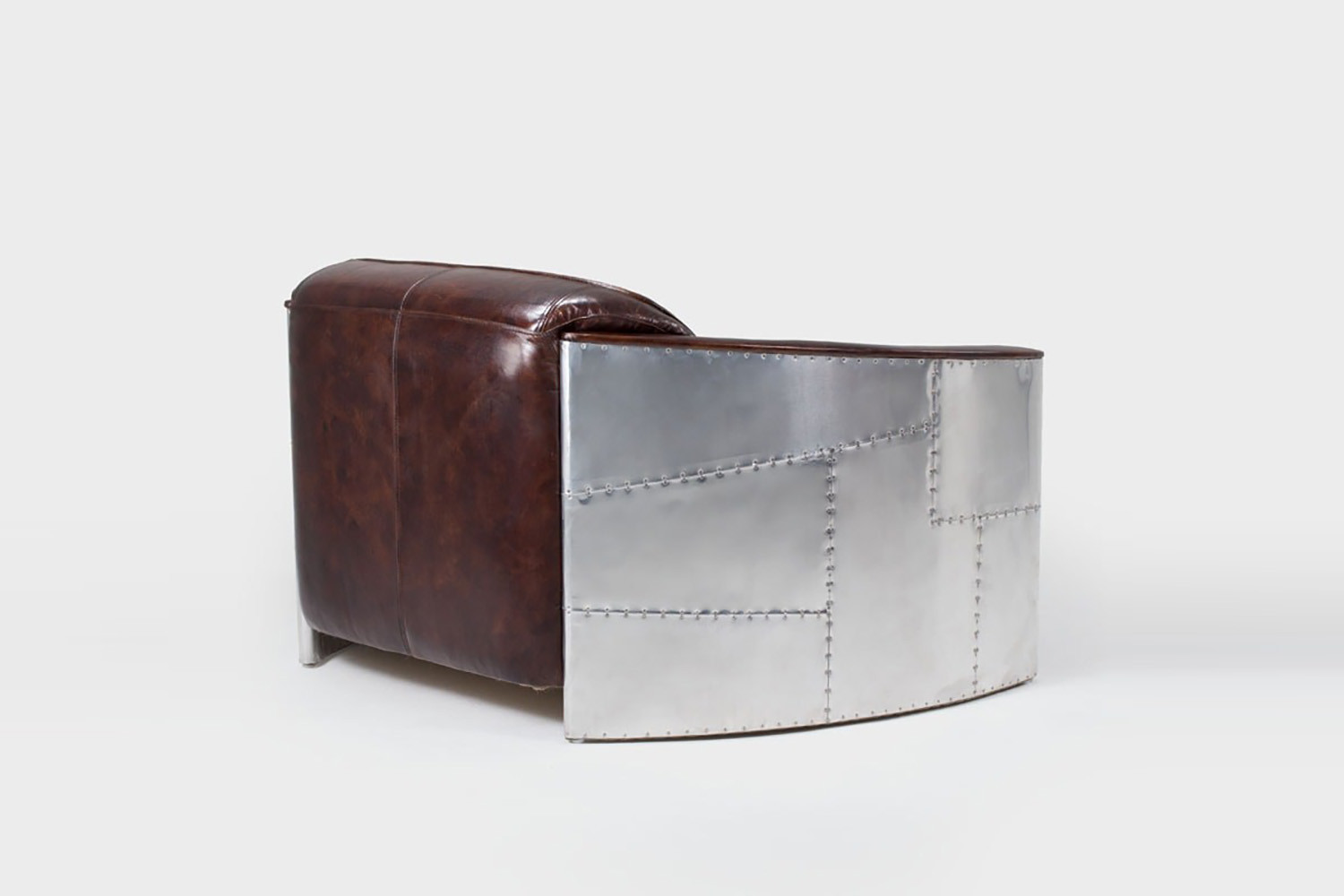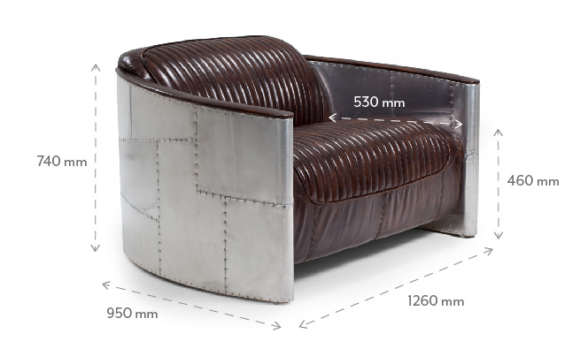 Bold and daring, going where no chair has gone before, the Hawker stands out in any setting. Featuring full-grain leather tailored to perfection, with a distinctive curved frame wrapped in vintage aluminium paneling to replicate a famed WWII fighter plane design, the iconic Hawker 2-Seater Leather Couch makes a statement that simply can’t be ignored.