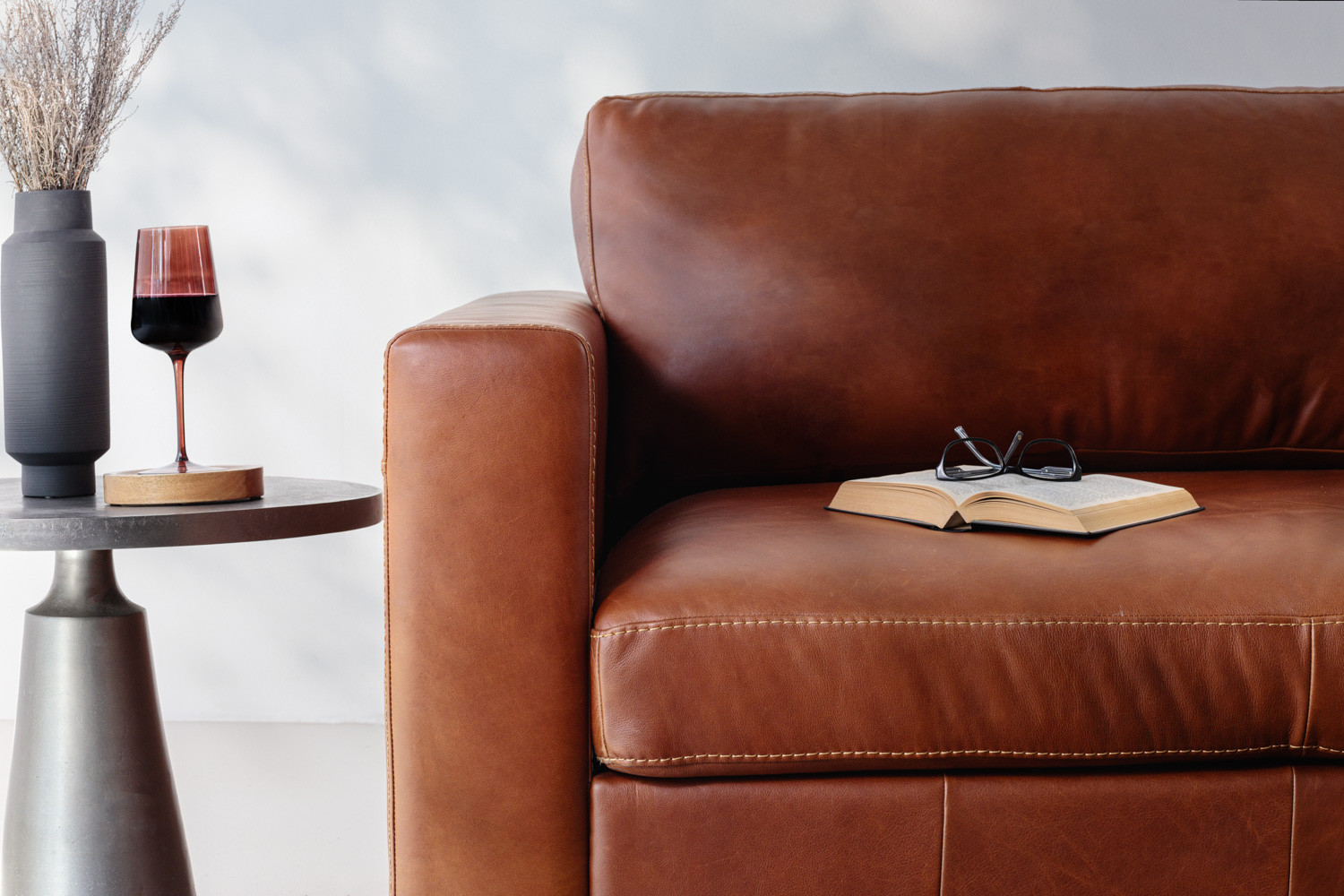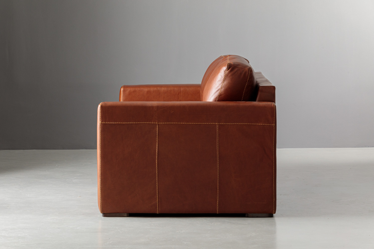 The Archer's premium leather exterior, plush feather cushioning and attention to detail makes this prestigious couch a status symbol in your home. Featuring full grain leather, with composite duck feather inners and exposed stitching, this generous couch elevates your living space to a new level of luxury.