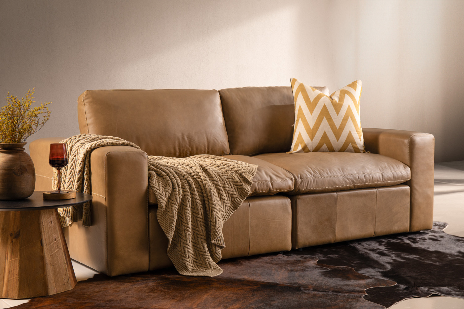 Bexley Modular 3-Seater Leather Couch - Sahara