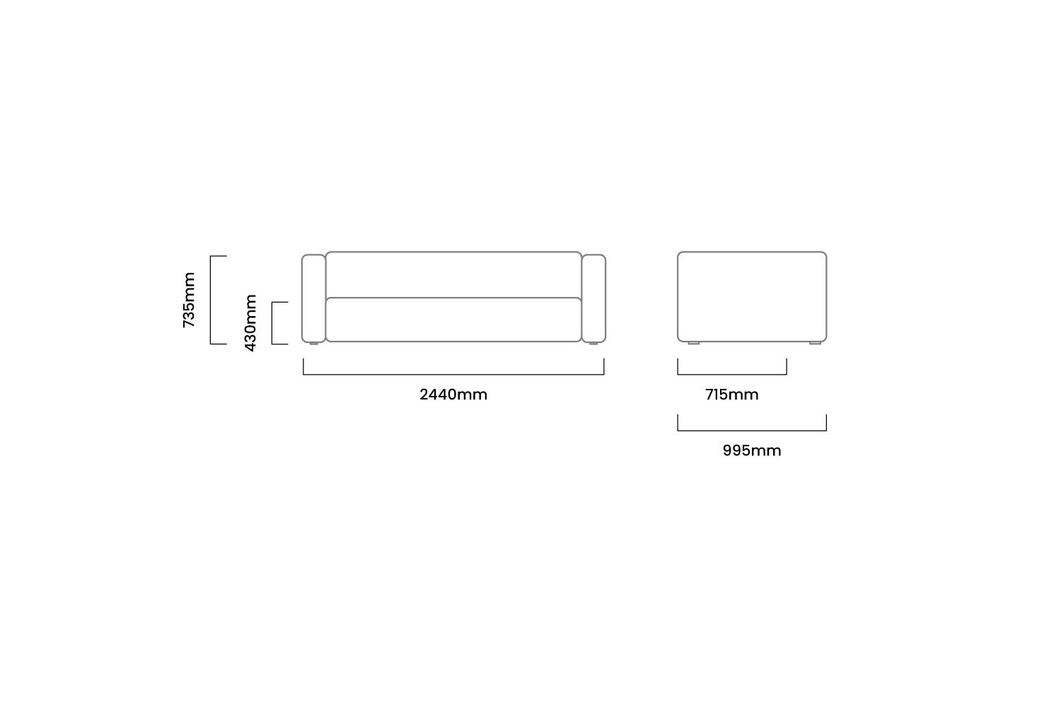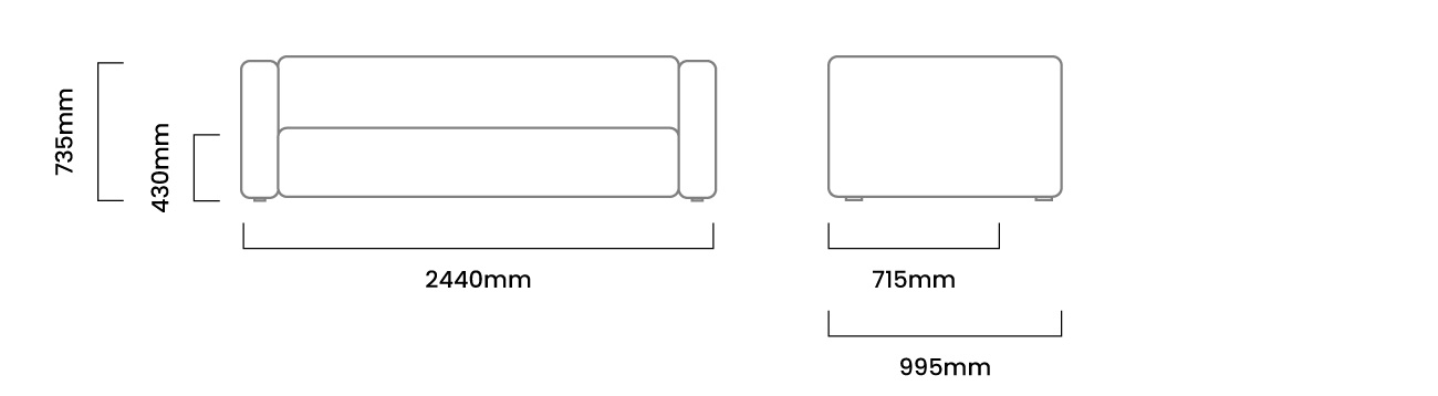 2440mm (L) x 995mm (W) x 735mm (H) | Seat Height 430mm | Seat Depth 715mm