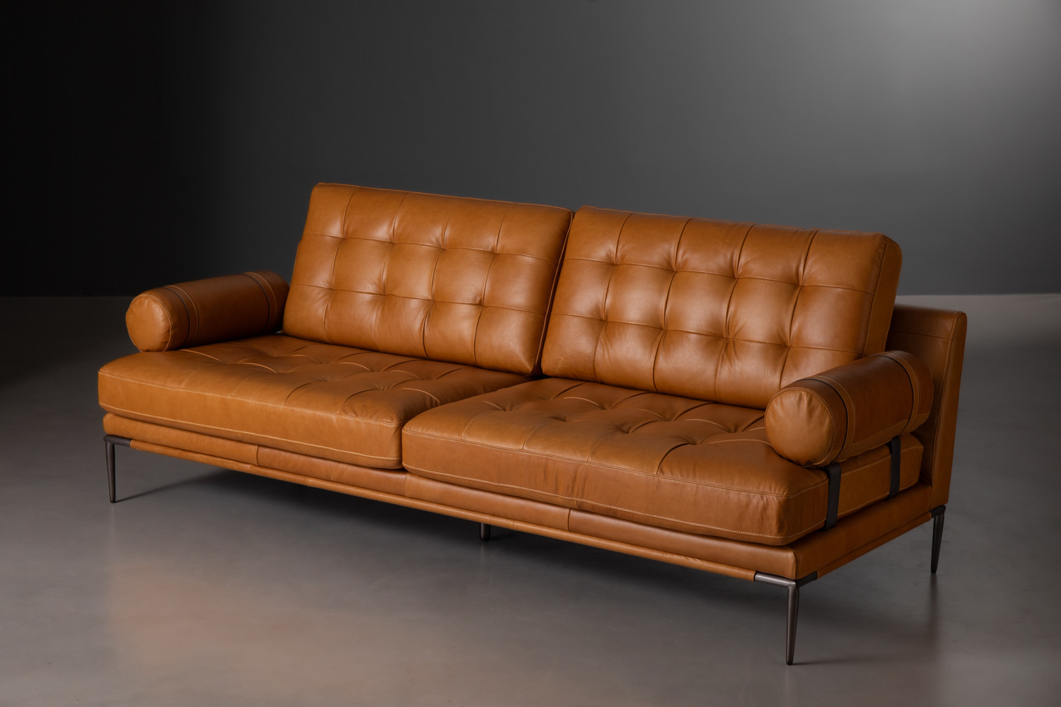 The Fletcher 3-Seater Leather Couch is designed for those who appreciate the finer things in life. Its sleek modern silhouette, softened by traditional design elements like square tufting, makes it a versatile addition to both classic and contemporary interiors. Upholstered in rich Bourbon full-grain leather, this couch exudes warmth and sophistication, developing a beautiful patina over time that adds character to your living space.