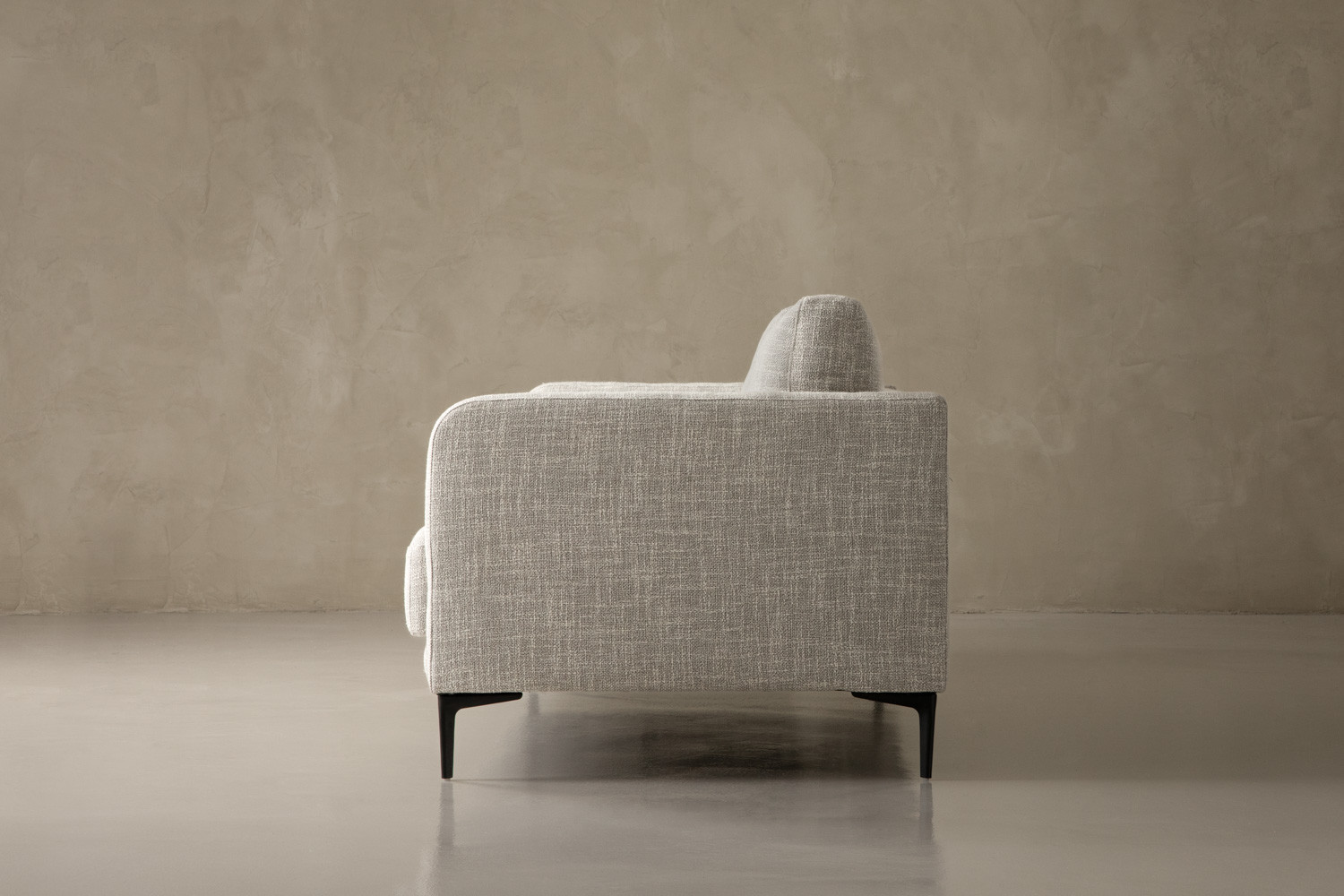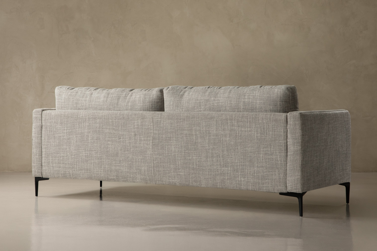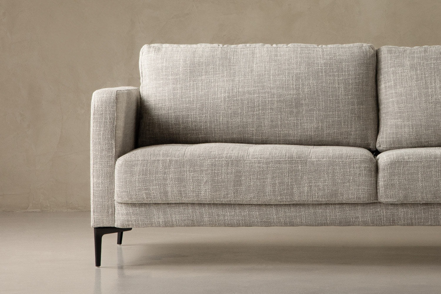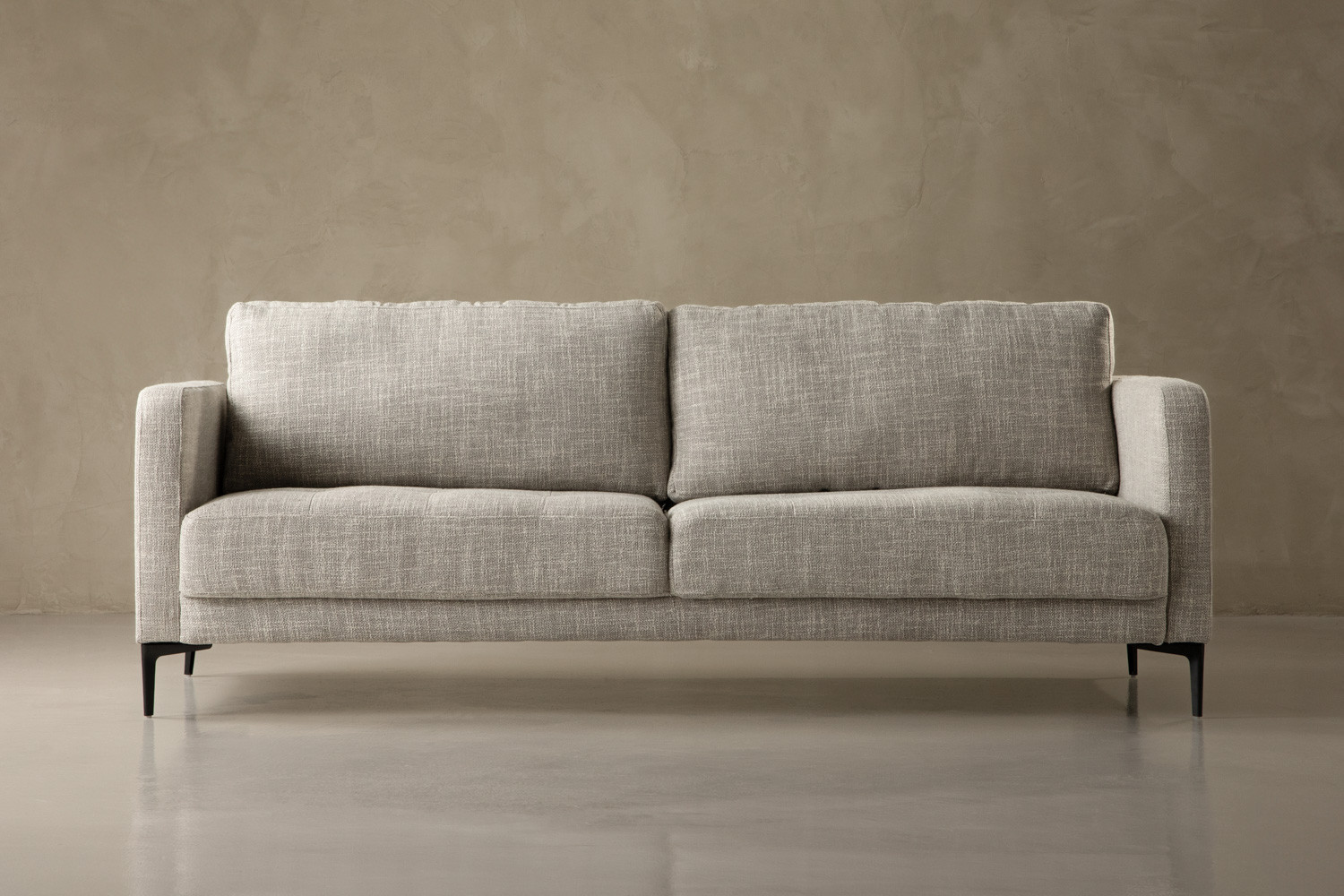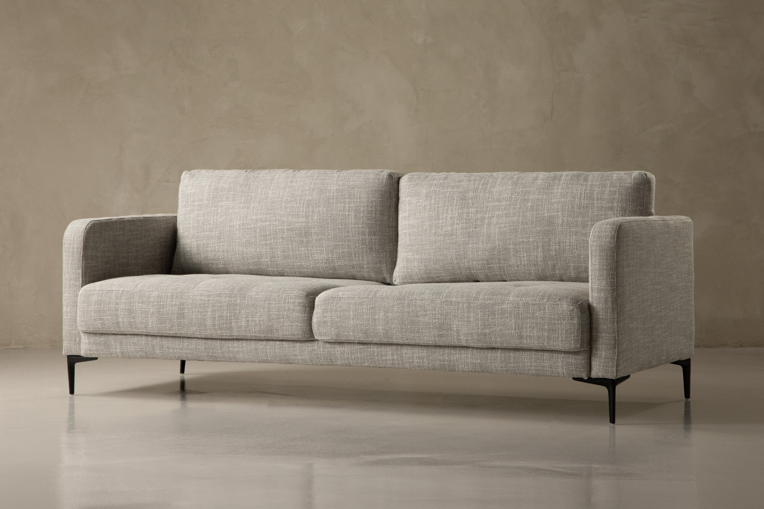 The Hayden 3-Seater Couch pairs plush cushioning with blind-tufted cushions and tapered steel legs for refined modern relaxation. Upholstered in a textured fabric with grey tones, this opulent design brings elegance to any lounge setting. Spacious seating and a classy silhouette complete this inviting piece.