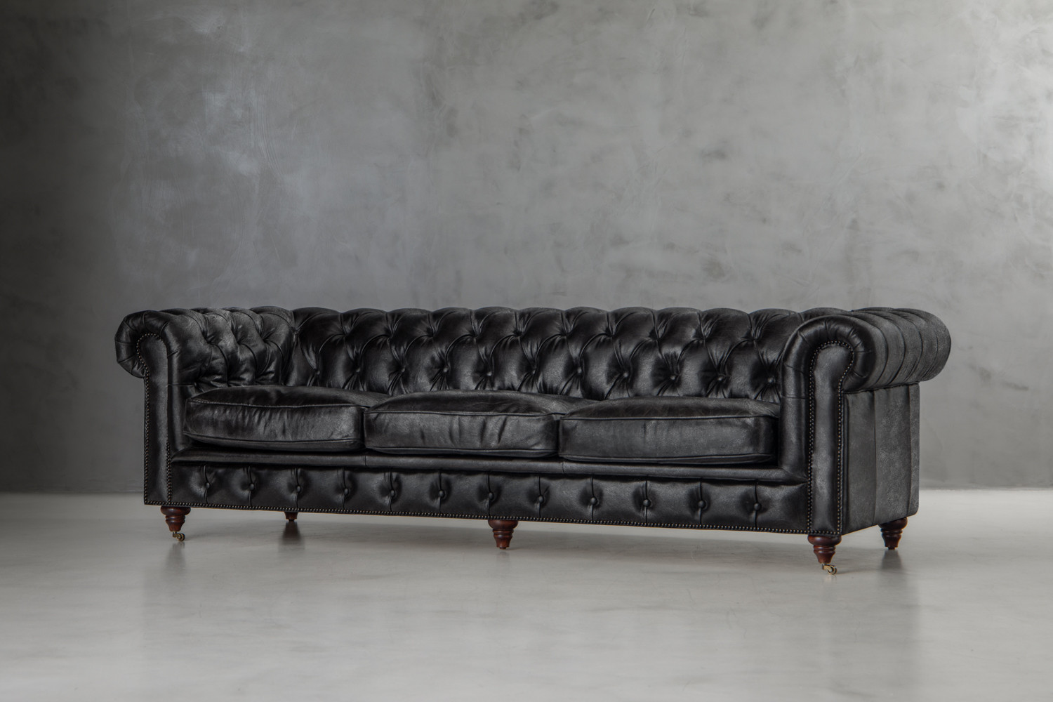 The iconic Jefferson Leather 3-Seater Couch will command any room with effortless charm. With its iconic deep button tufting, high rolled arms and nailhead trim, the design has proven itself as a timeless classic over the years. Our Jefferson lives up to its reputation, ensuring the feel of suave luxury with its full grain leather upholstery and piano caster front feet.
