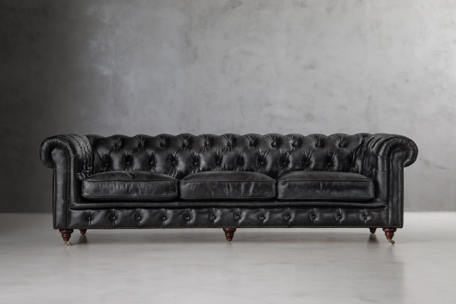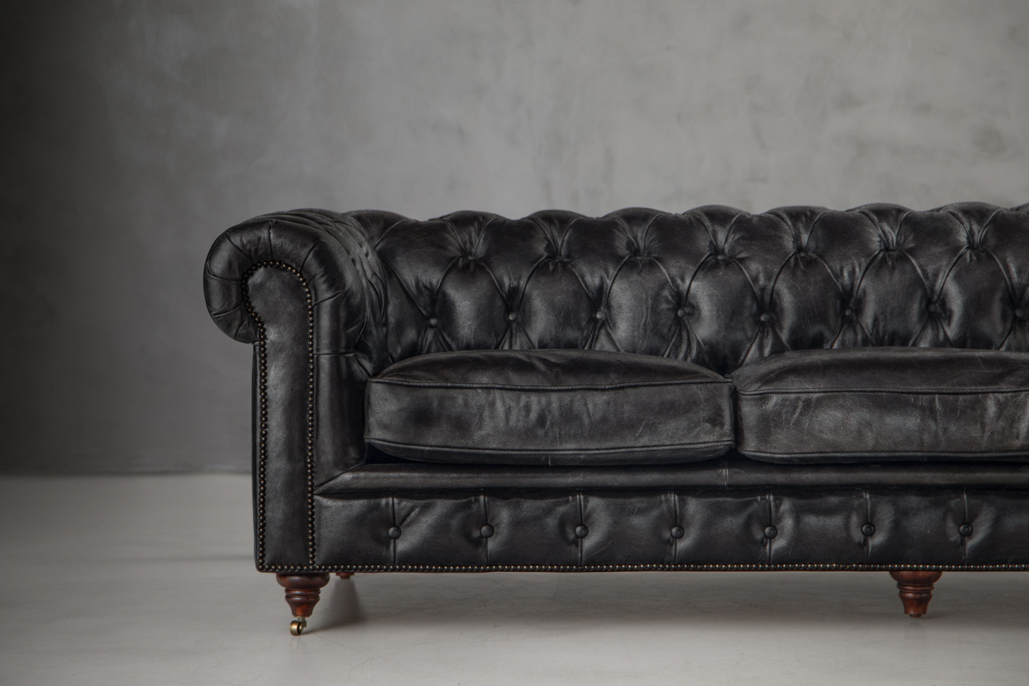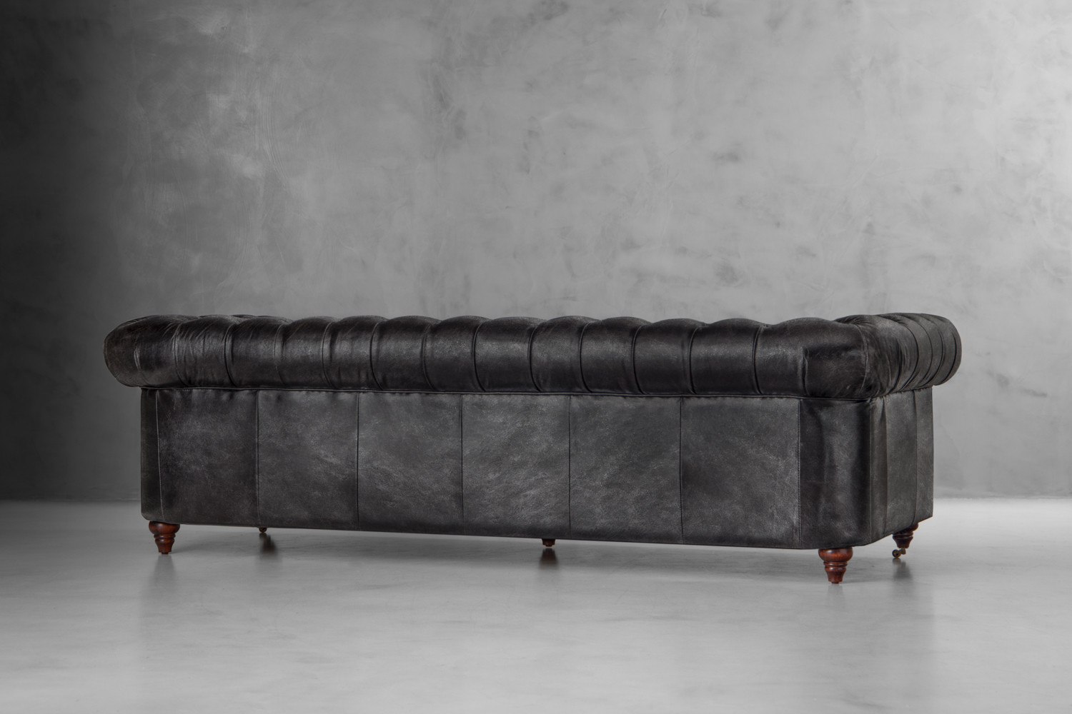 Jefferson Chesterfield 3-Seater Leather Couch - Distressed Black