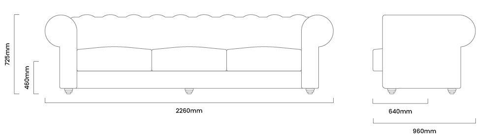 2260mm (L) x 960mm W) x 725mm (H) | Seat Height - 460mm | Seat Depth - 640mm