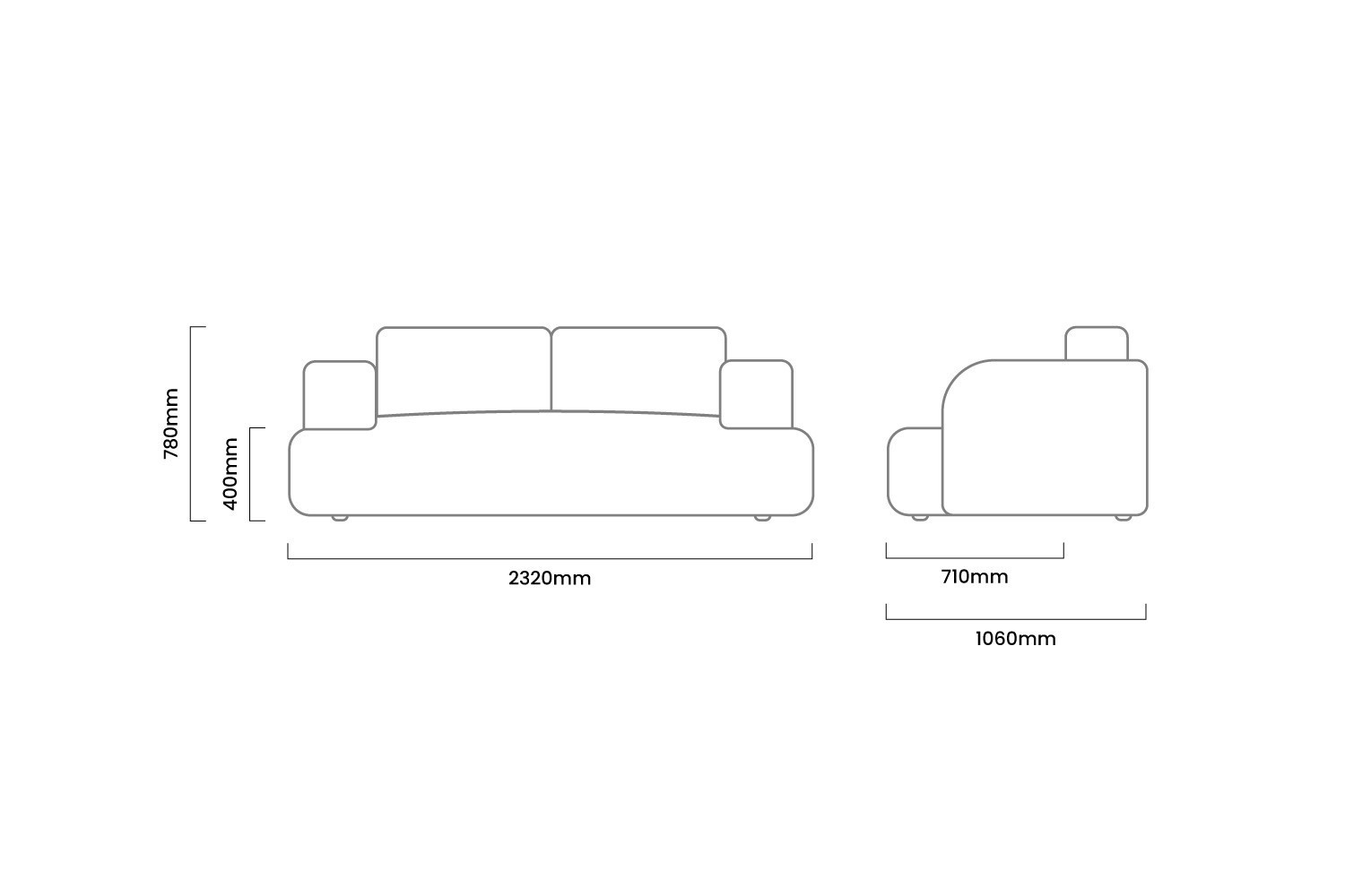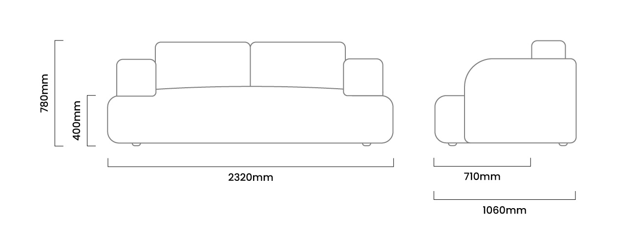 2320mm (L) x 1060mm (W) x 780mm (H) | Seat Height - 400mm | Seat Depth - 710mm