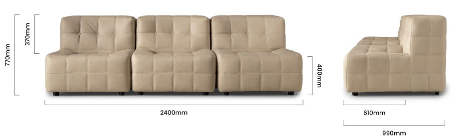 2400mm (L) x 990mm (W) x 770mm (H) | Seat Height - 400mm