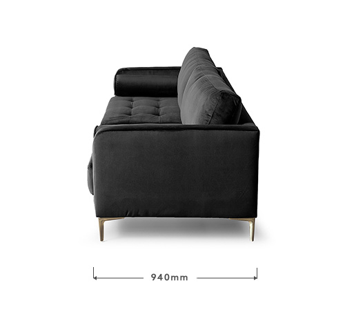 Add a rich dose of colour and texture to your living space with the Hayden 3 Seater Couch, upholstered in luxurious velvet. This opulent couch features an elegant modern design, finished with distinctive stitching. The blind tufted seat cushions and tapered metal legs give the Hayden a unique character and charm.