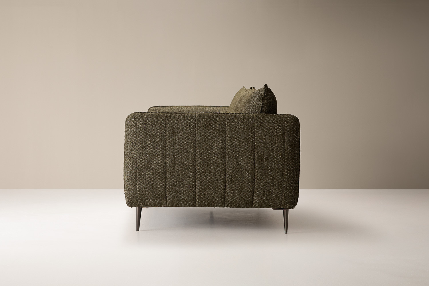 With its mid-century modern inspired design, this sleek and well-proportioned couch emphasises easy comfort and clean lines for a simple yet stylish look. High-quality upholstery adds a luxurious finish, with tapered steel legs perfectly contrasting and balancing the design overall.
