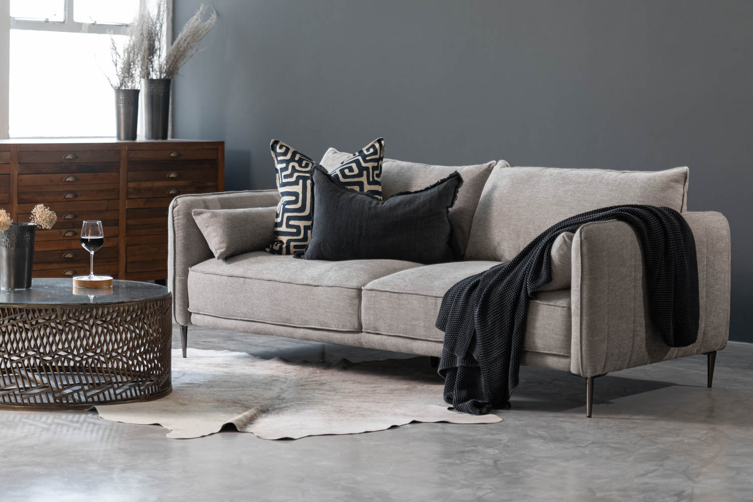 With its Mid-century modern inspired design, this sleek and well-proportioned couch emphasises easy comfort and clean lines for a simple yet elegant look. High quality upholstery adds a luxurious finish, with tapered steel legs perfectly contrasting and balancing the design overall.