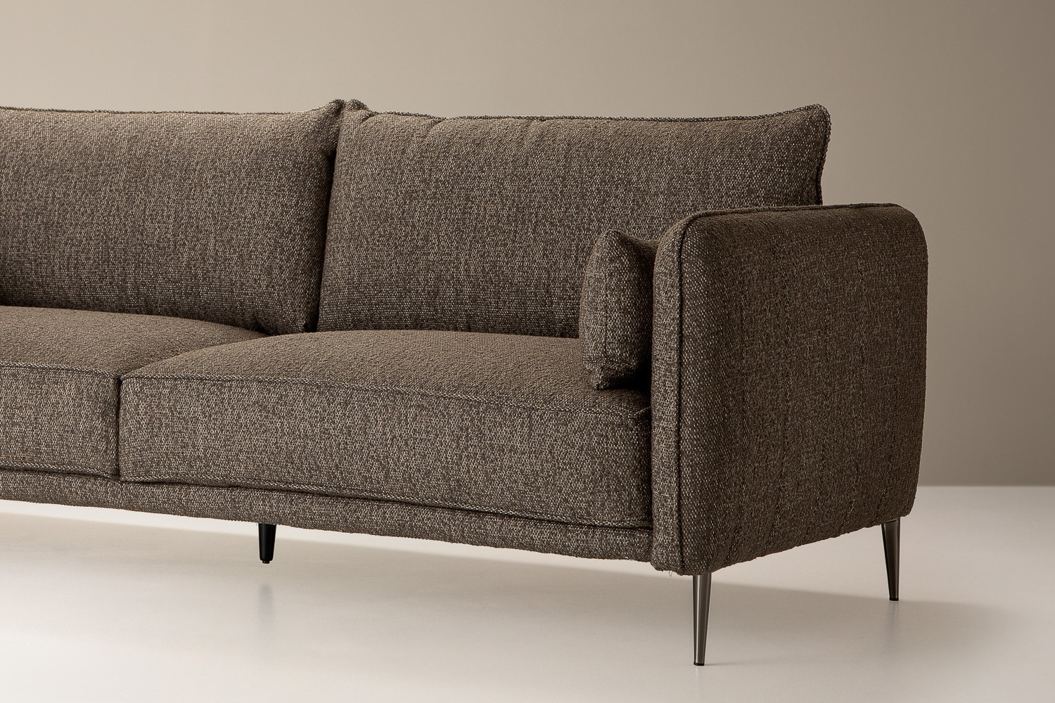 With its mid-century modern inspired design, this sleek and well-proportioned couch emphasises easy comfort and clean lines for a simple yet stylish look. High-quality upholstery adds a luxurious finish, with tapered steel legs perfectly contrasting and balancing the design overall.