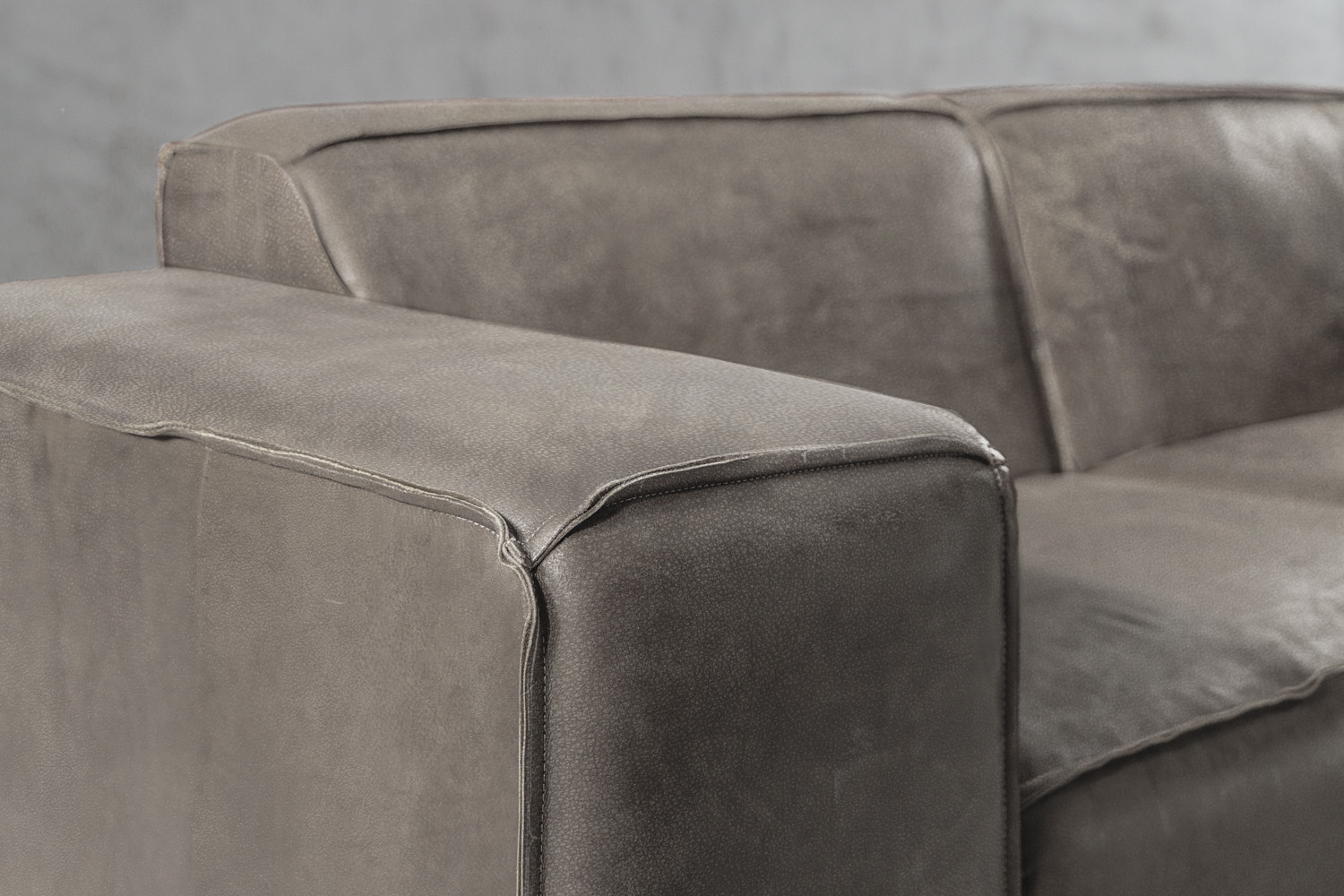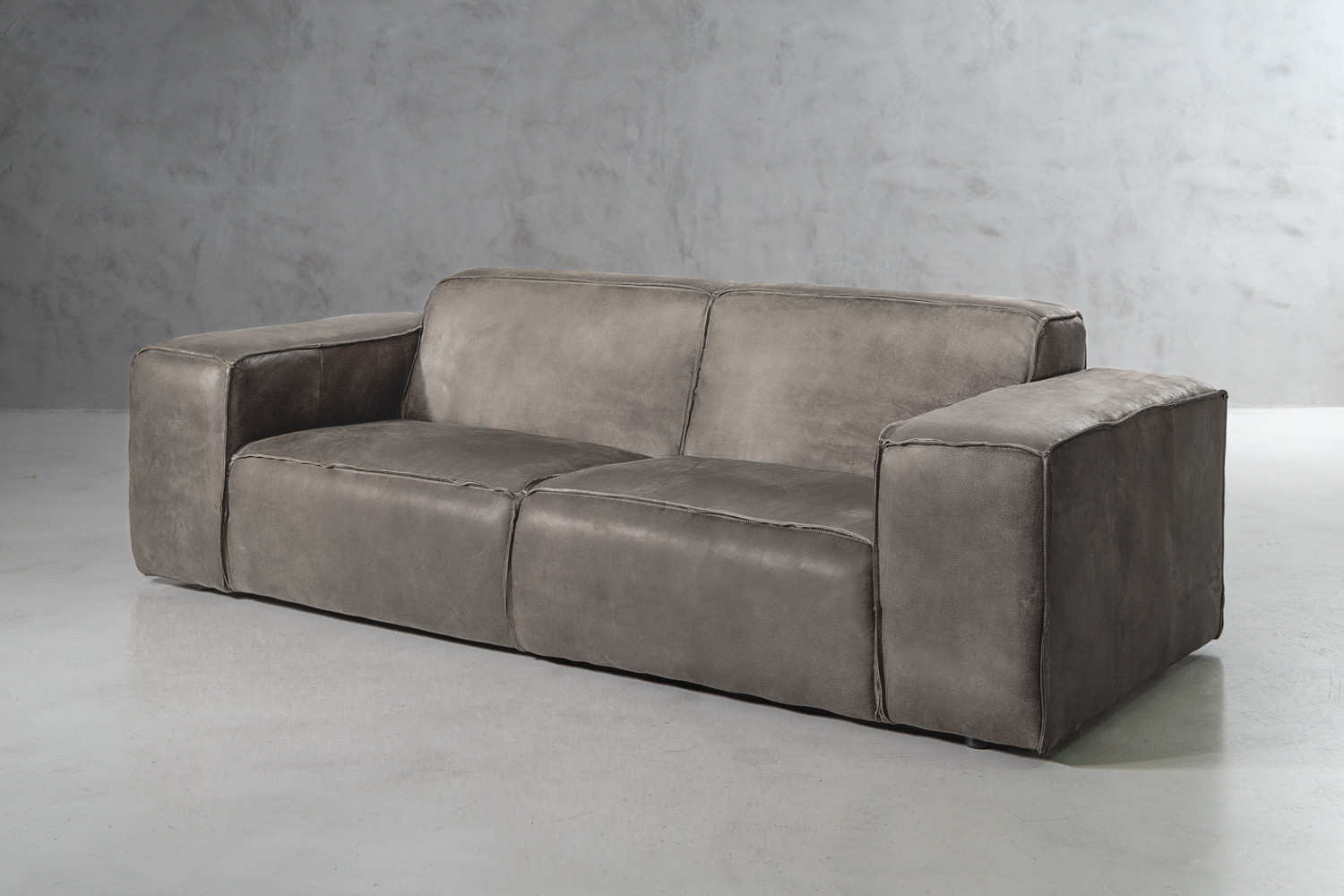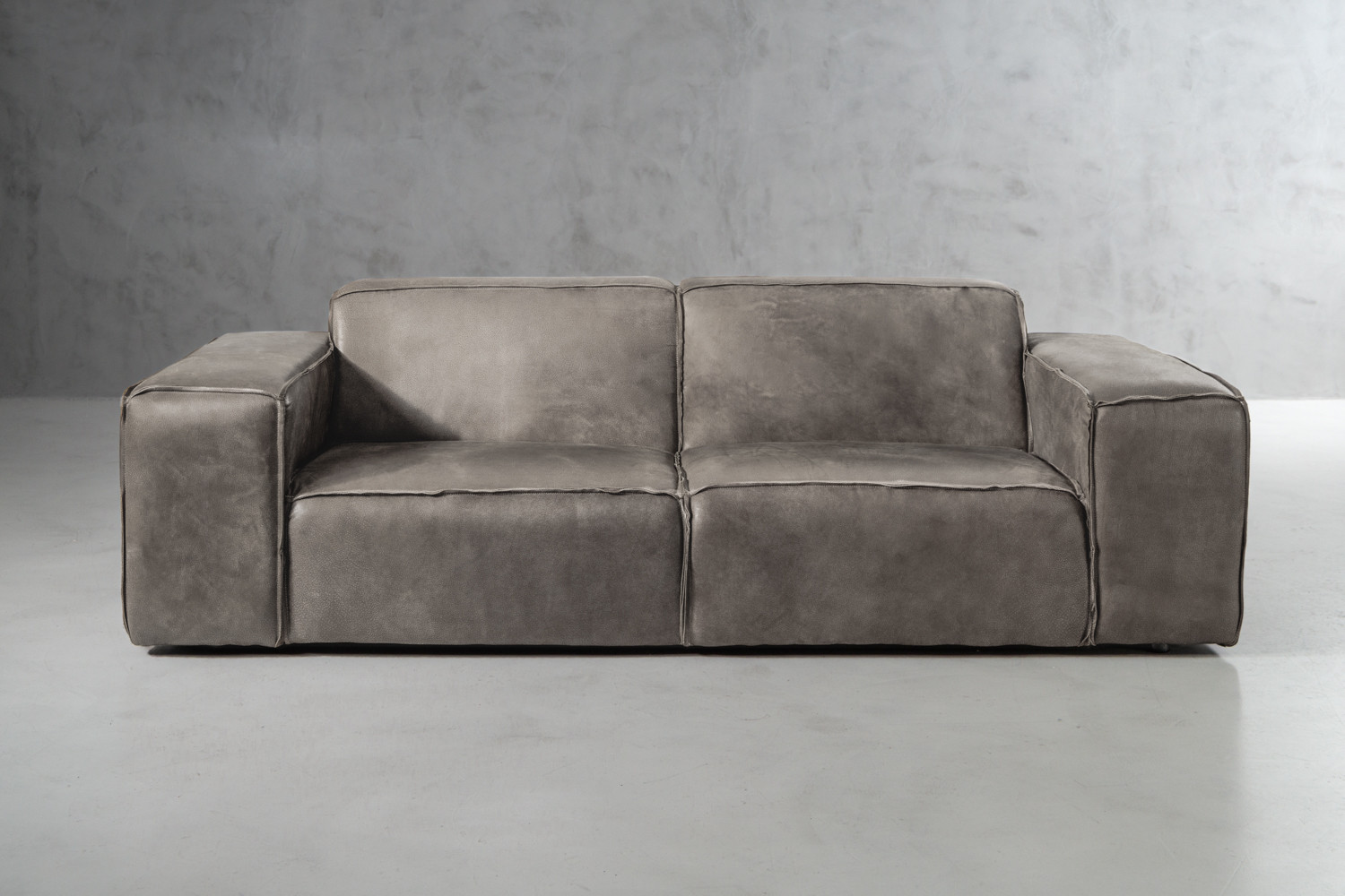 The Jagger Couch boasts a bold contemporary design with a square-like silhouette, keeping the design simple but striking. The Jagger is upholstered with luxurious Nubuck genuine leather, finished with reversed stitched seams to keep a natural raw look with a warm feel. This couch is the ideal furniture piece for any contemporary setting.