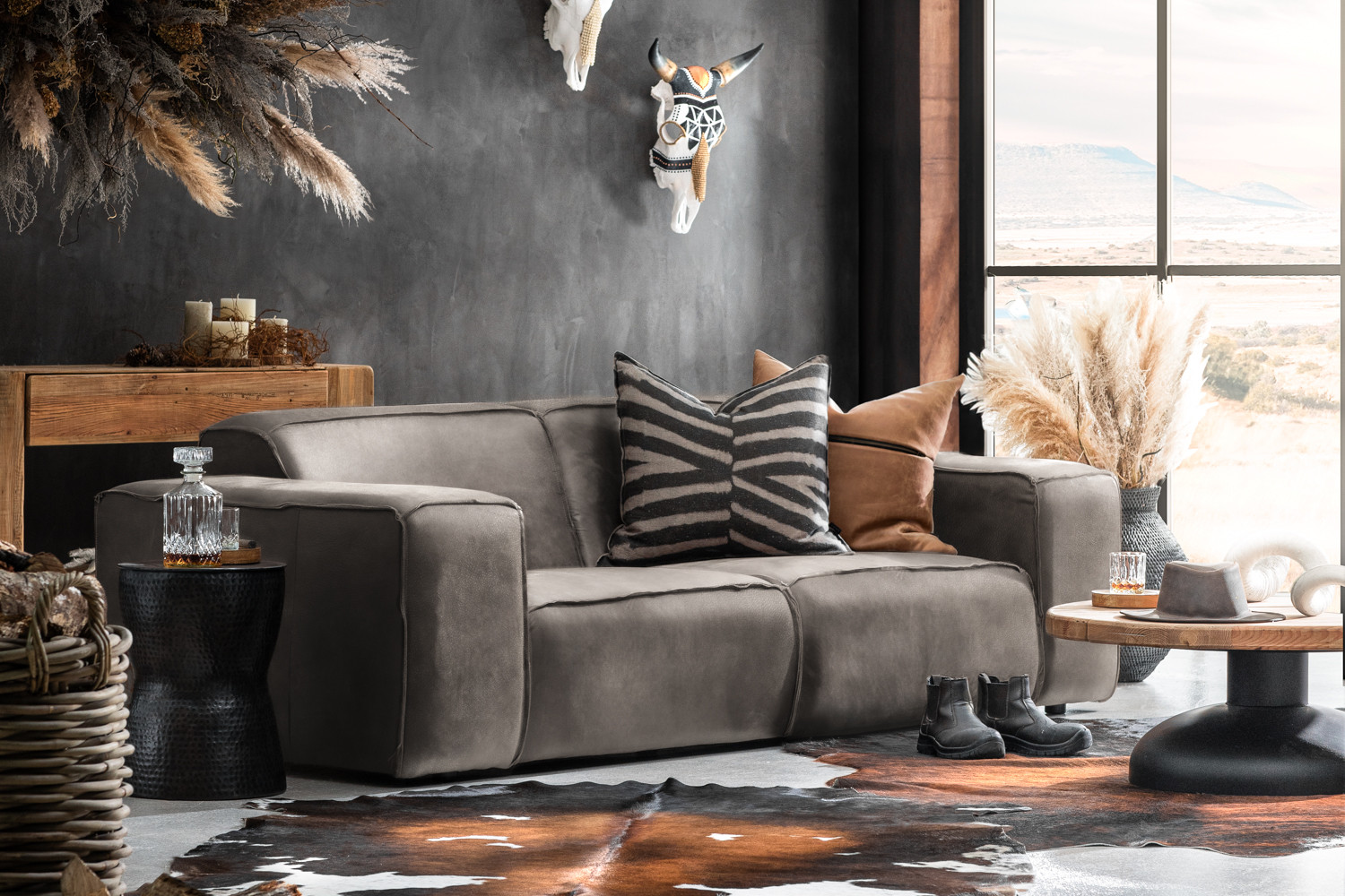 Jagger 3-Seater Leather Couch - Graphite