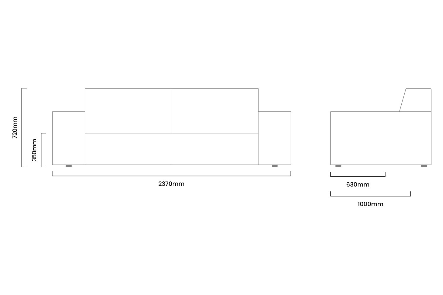 2370mm (L) x 1000mm (W) x 720mm (H) | Seat Height - 350mm | Seat Depth - 630mm