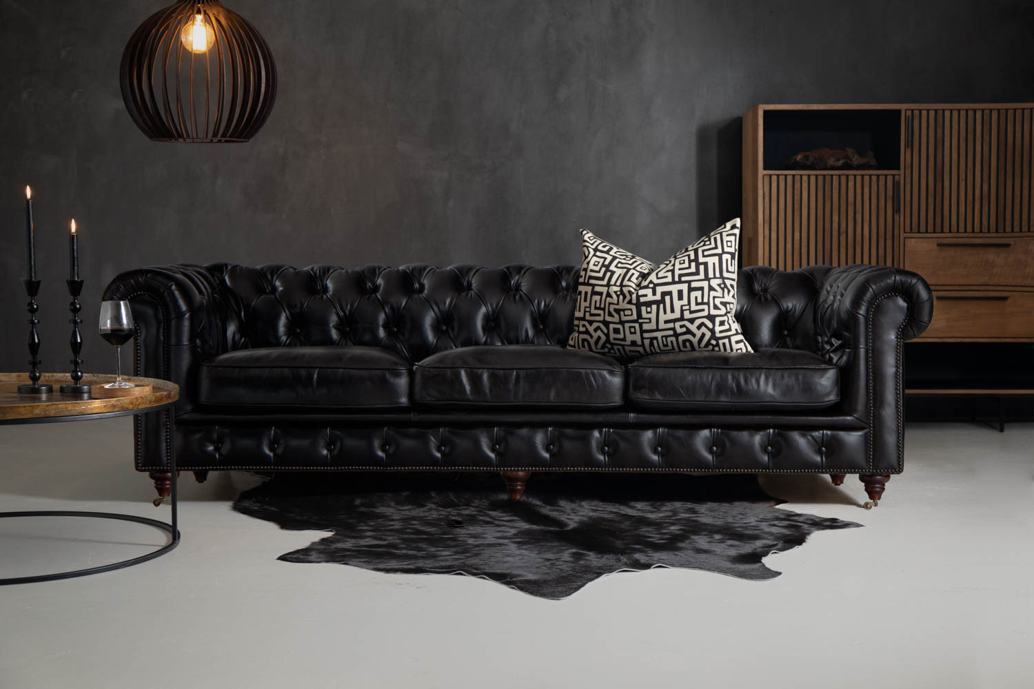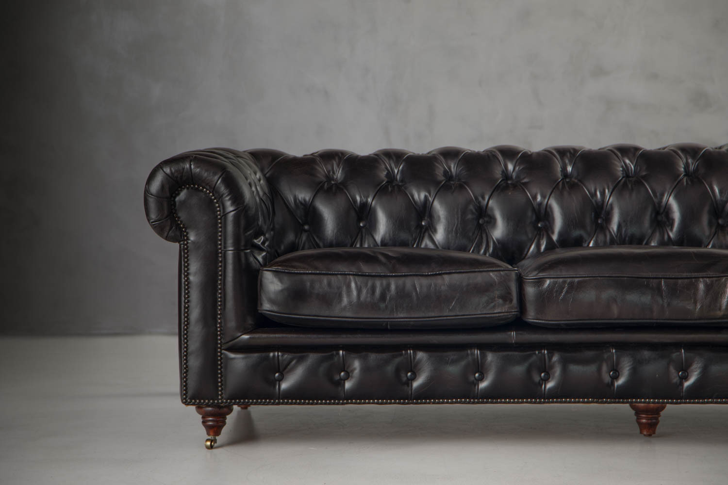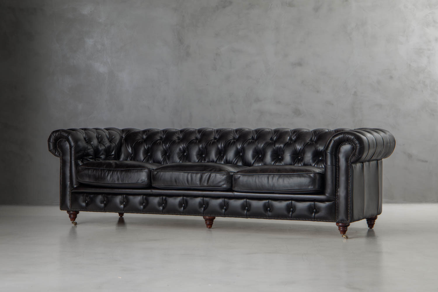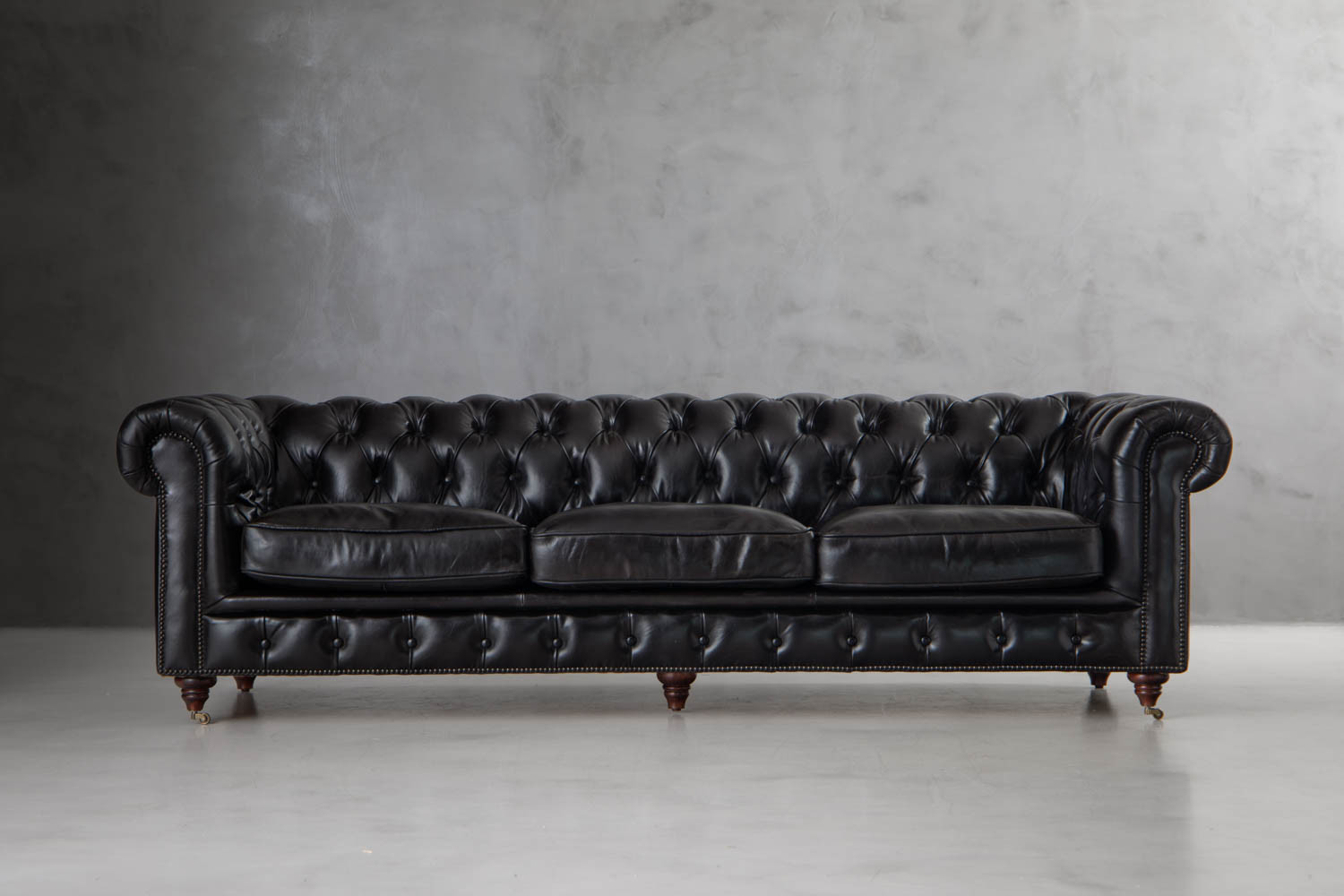 Add a classy, luxurious statement piece to your home with the Jefferson, a timeless style icon. Our Jefferson range features the finest in full grain leather. The gorgeously soft surface, deep-buttoned tufting, and thick cushioning make this one of the most comfortable couches you’ll ever sit on. Bevelled wooden feet add to the traditional charm of the design, while piano caster front feet allow for easy repositioning when you decide it’s time to cosy up to the fireplace, grab a leather-bound diary or classic novel, and you’re all set!