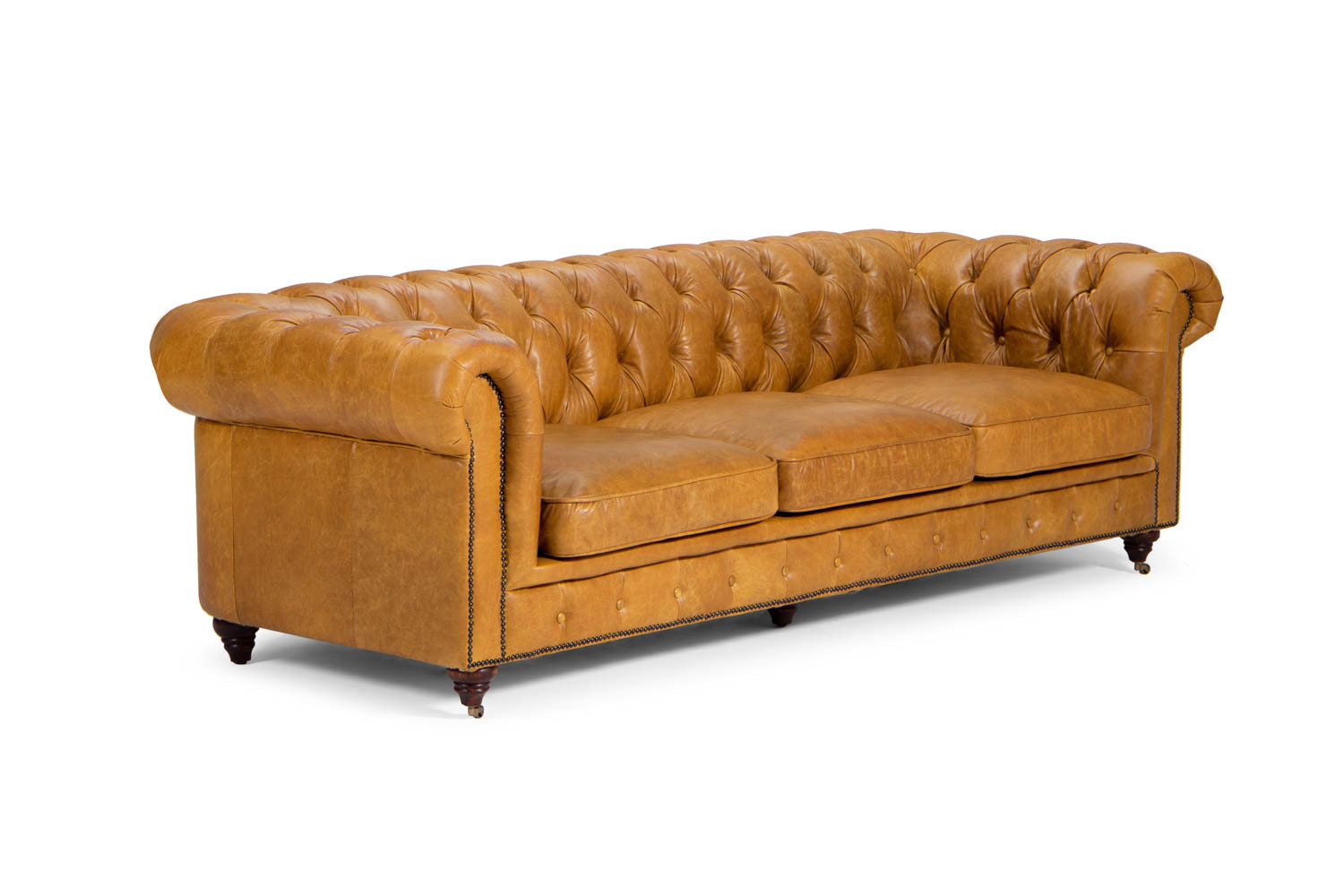 Add a classy, luxurious statement piece to your home with the Jefferson, a timeless style icon. Our Jefferson range features the finest in full grain leather. The gorgeously soft surface, deep-buttoned tufting, and thick cushioning make this one of the most comfortable couches you’ll ever sit on. Bevelled wooden feet add to the traditional charm of the design, while piano caster front feet allow for easy repositioning when you decide it’s time to cosy up to the fireplace, grab a leather-bound diary or classic novel, and you’re all set!