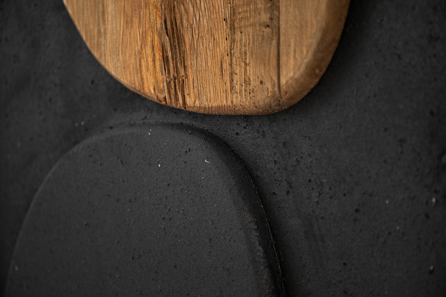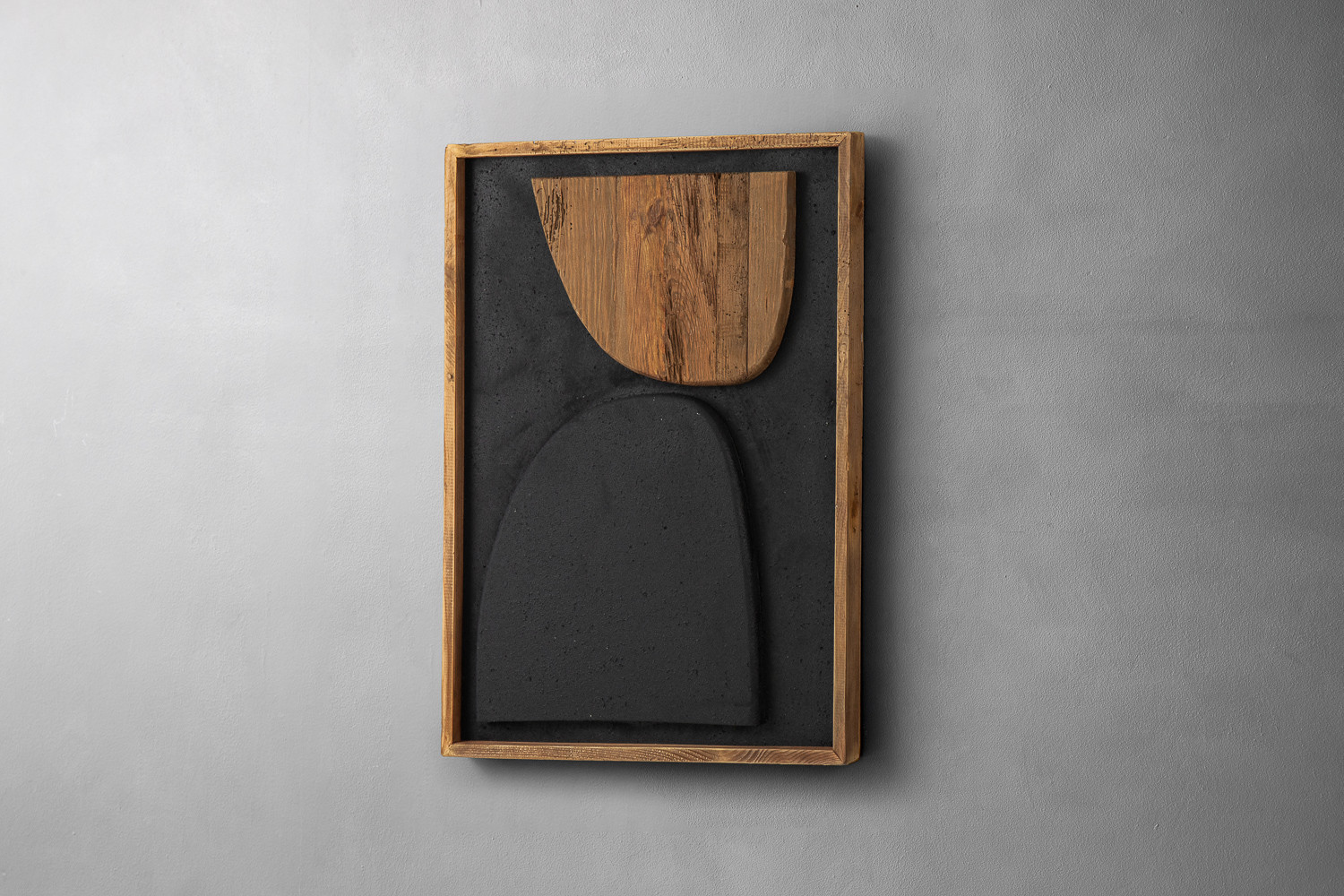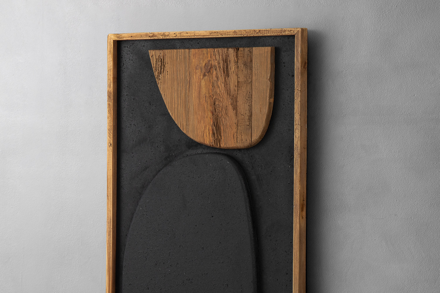 The Achilles uses solid reclaimed pine against a textured stretch canvas to cast its artistic spell. The piece embraces contemporary creativity for sophisticated living.