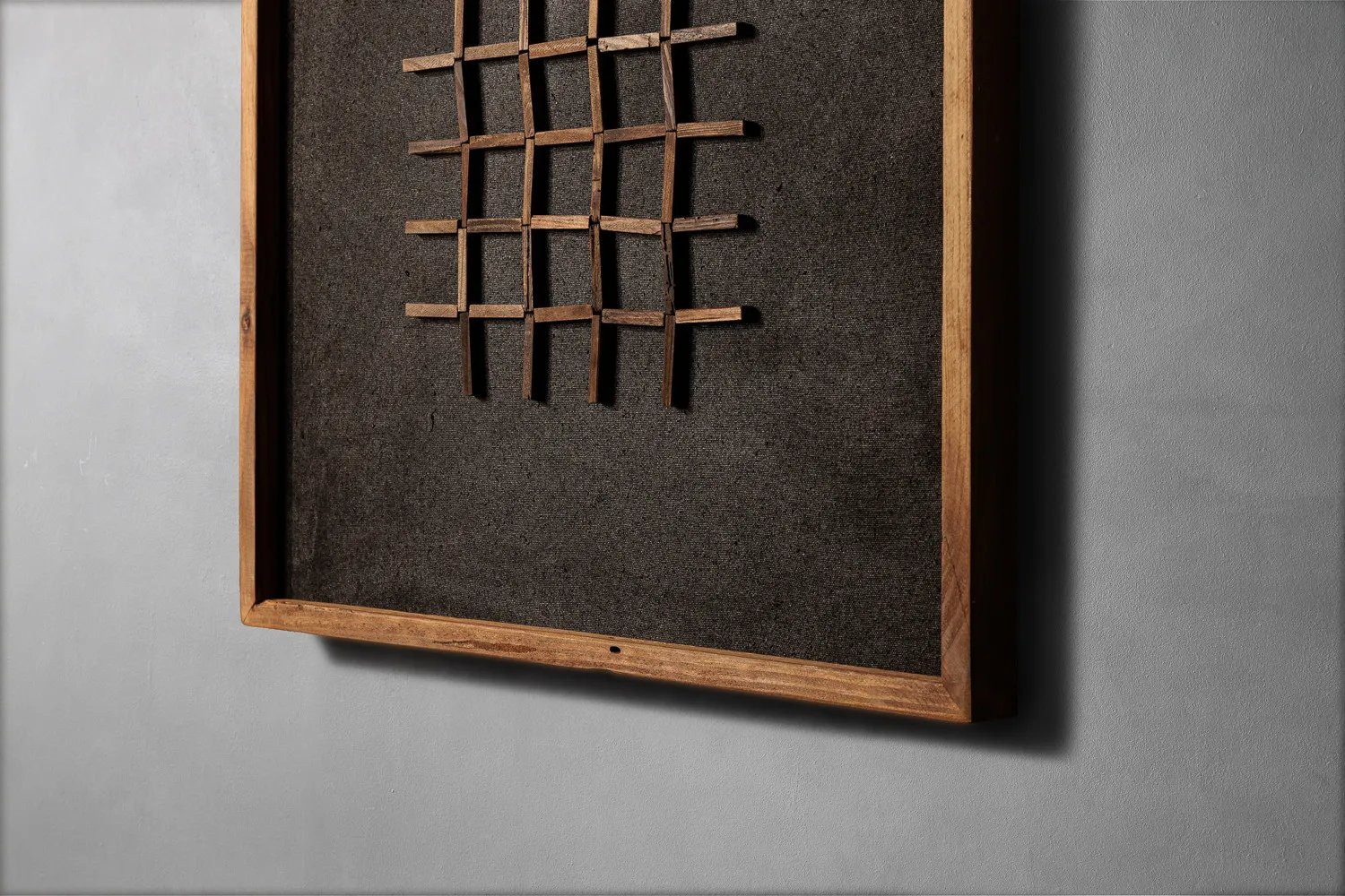Add understated elegance to your space with the Anisa. This captivating piece features a handcrafted geometric design set against a deep black backdrop, framed in rich tones of reclaimed pine. Its minimalist yet striking aesthetic makes it the perfect statement piece for contemporary, Scandinavian, or rustic interiors.
