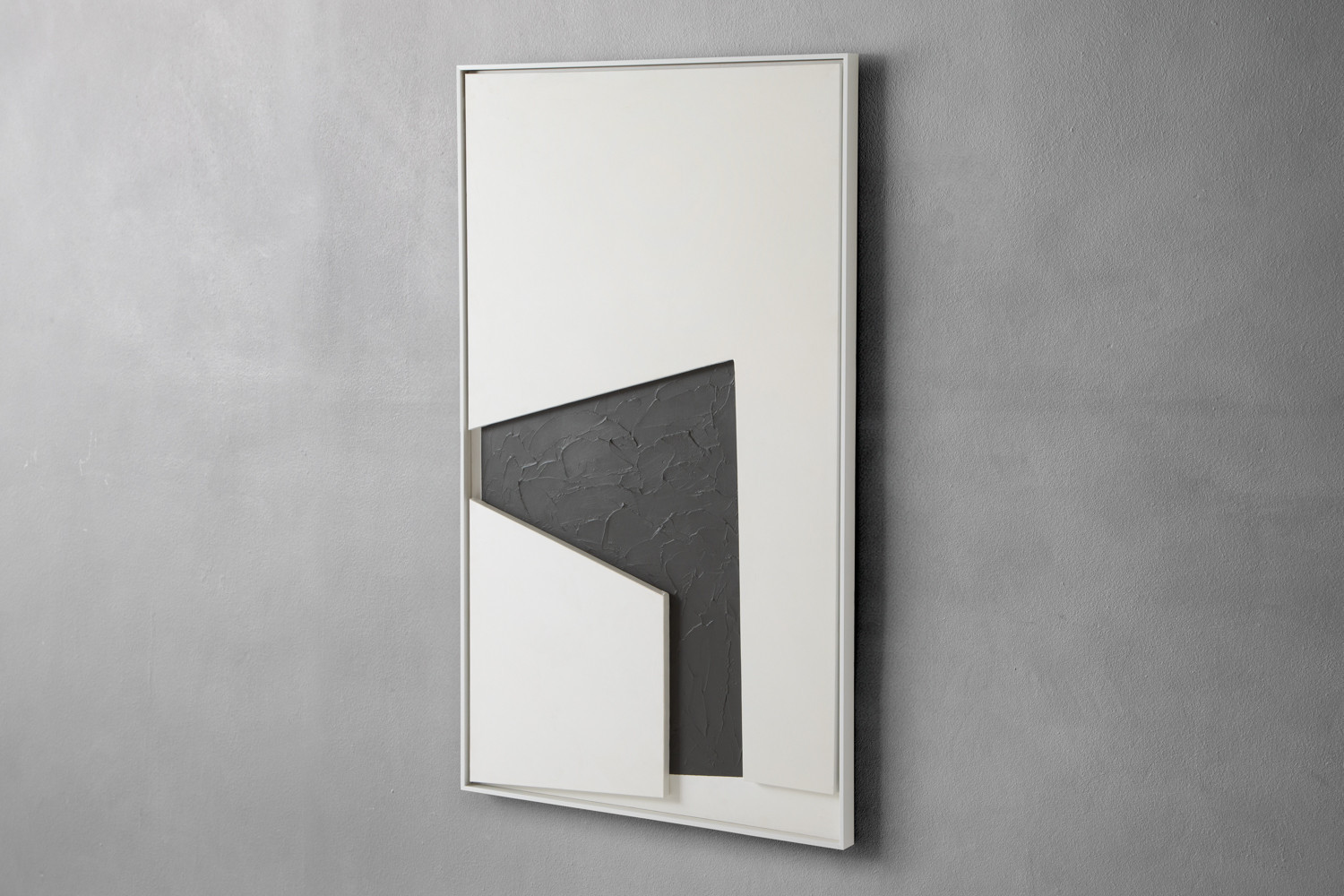 Make a statement with the stylish Galleria Wall Art. This vertical piece layers geometric white blocks over a dark, textured backdrop with a slim frame. The clean lines and sculptural depth add quiet sophistication to living rooms, dining spaces, and hallways.