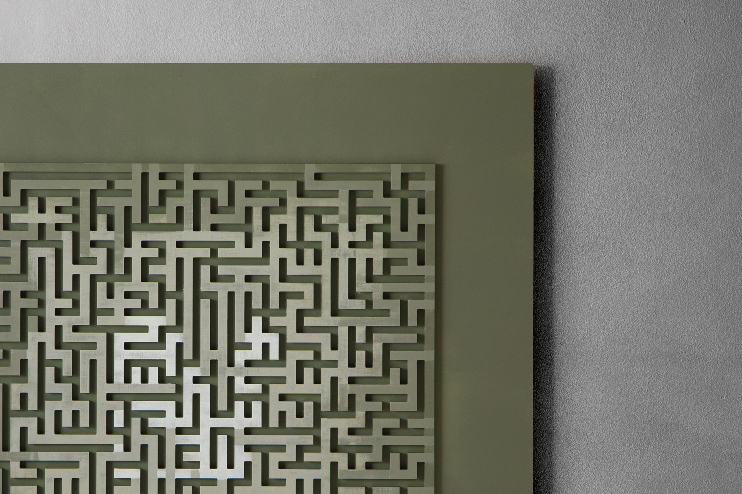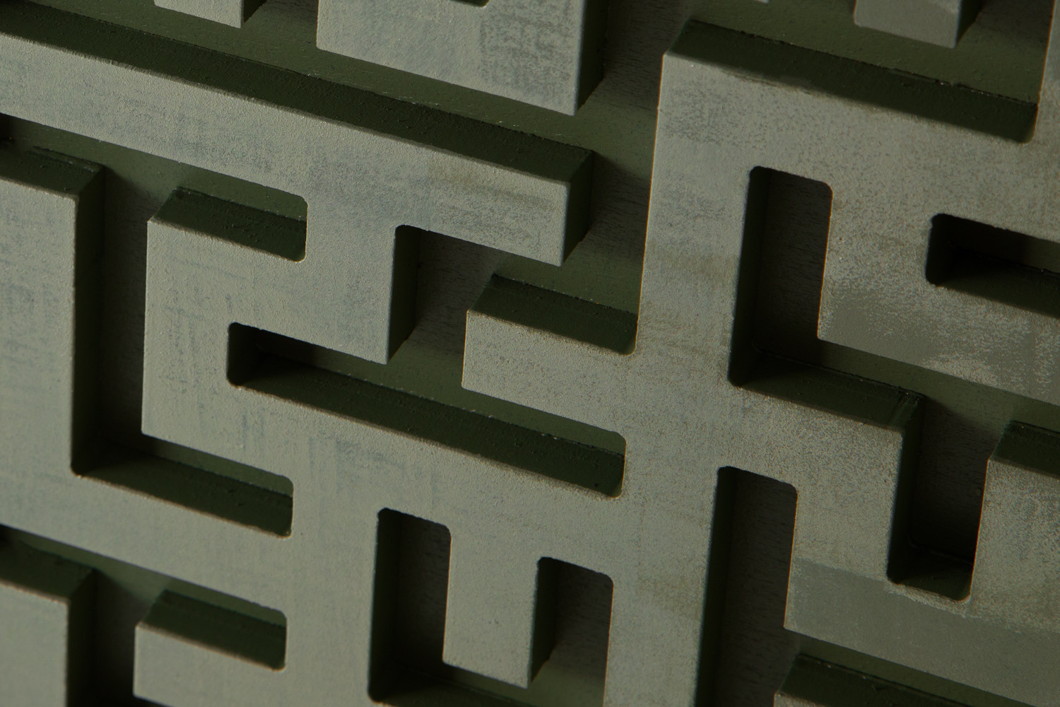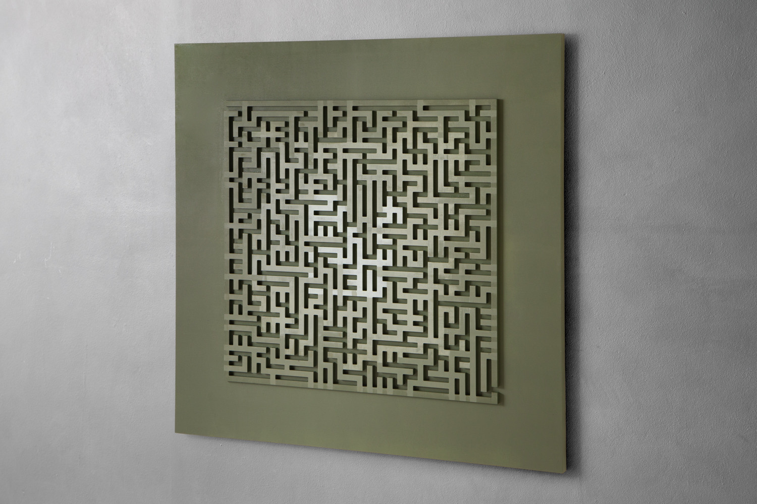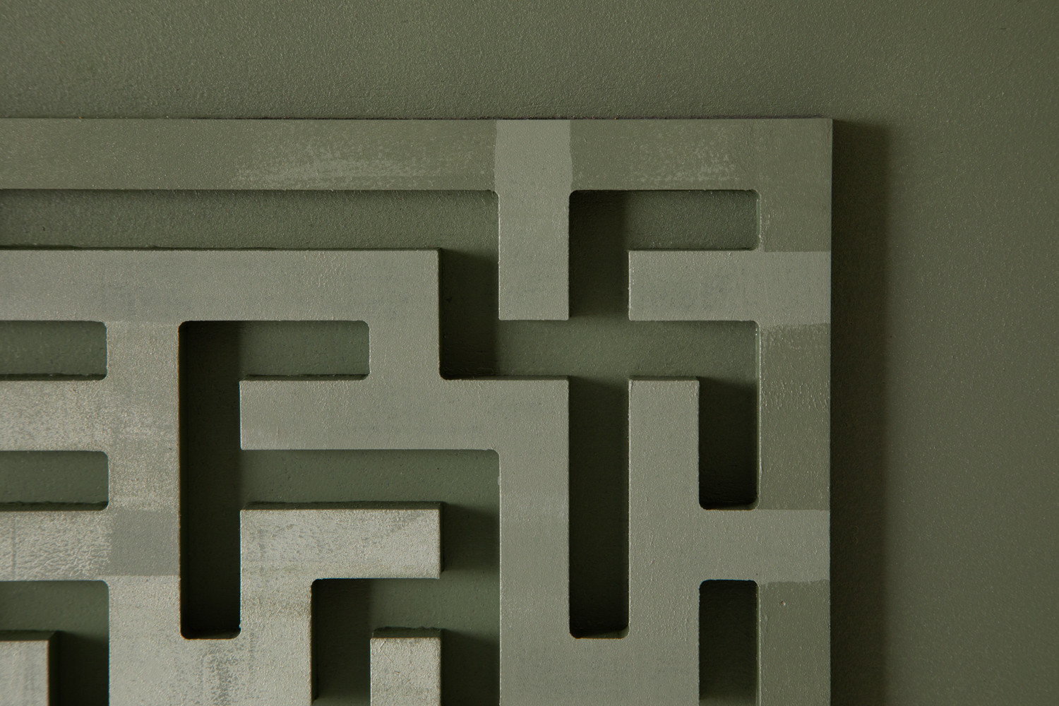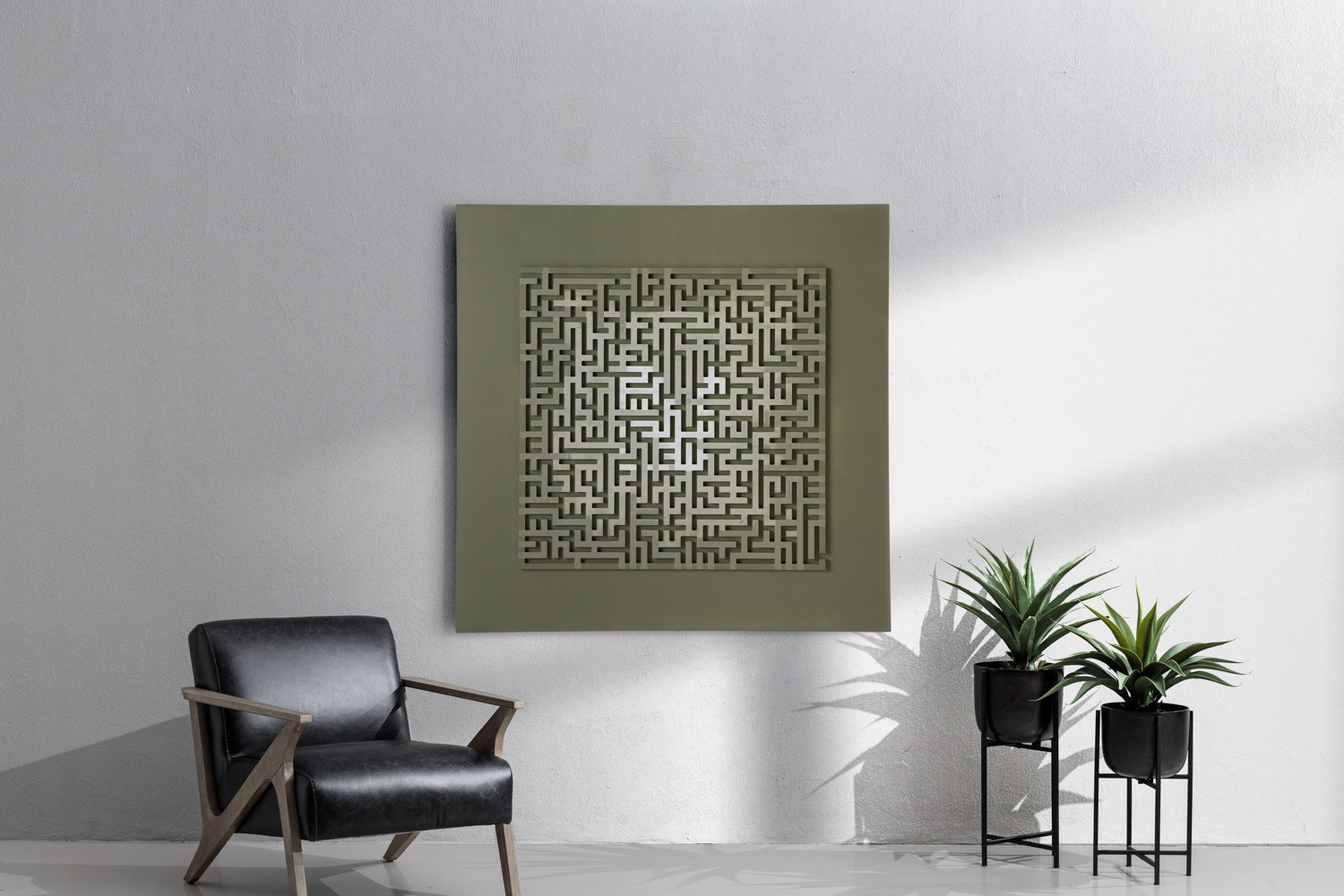 The Harita Wall Art adds contemporary intrigue to your interior. This layered canvas features a crafted fir wood structure that forms a striking geometric maze. The interplay of shadows gives it rich depth and texture, while the clean border keeps the look elegant and modern.