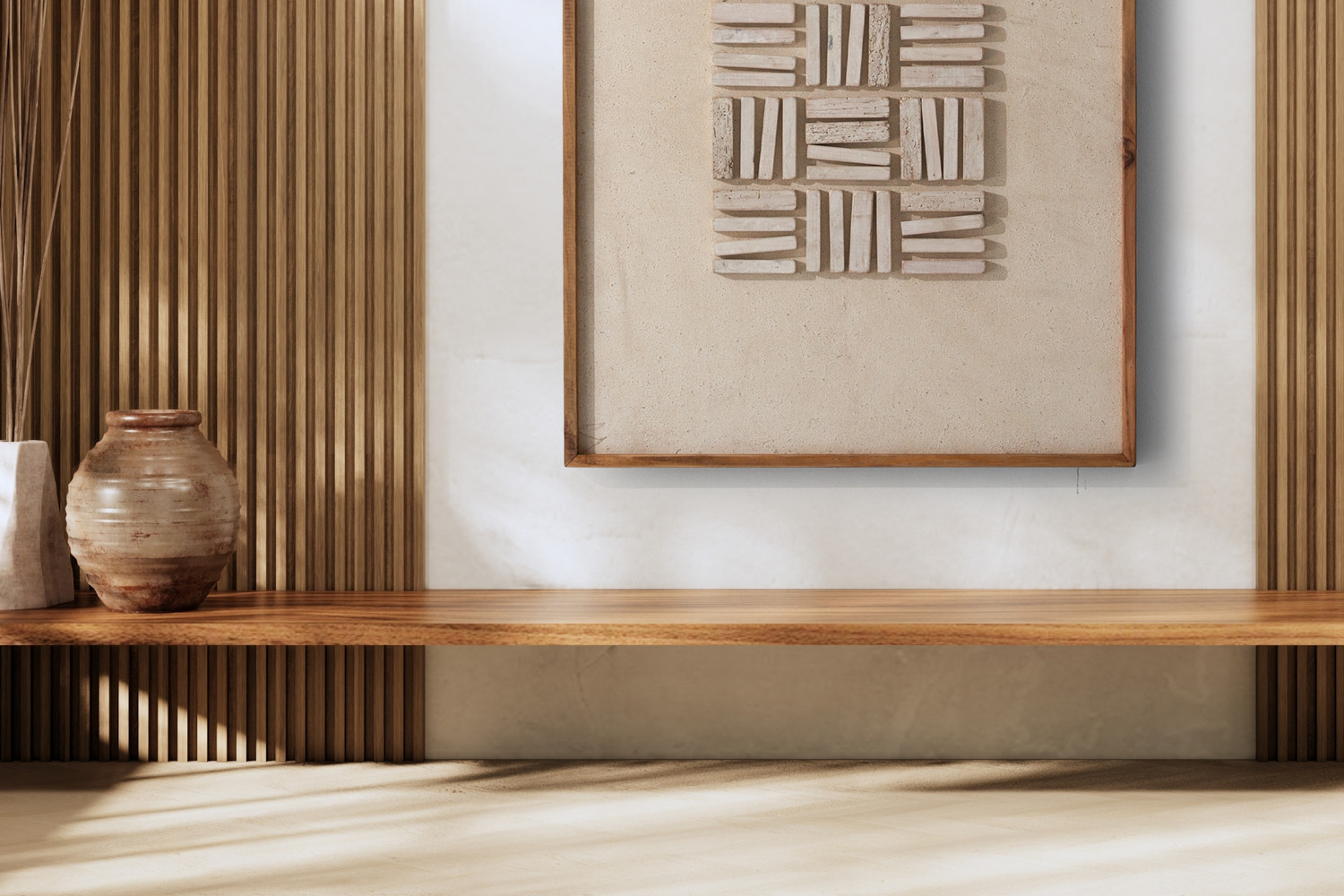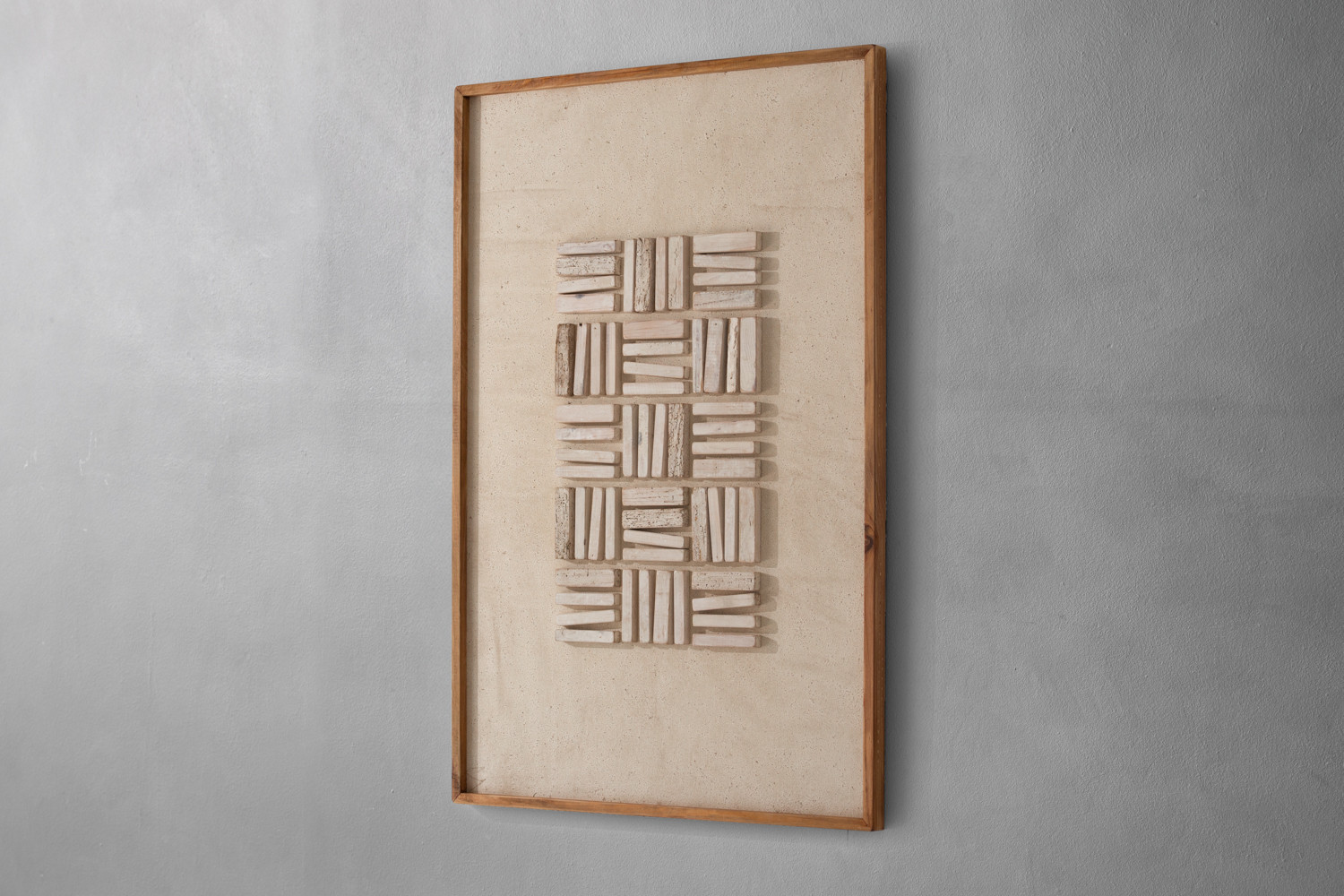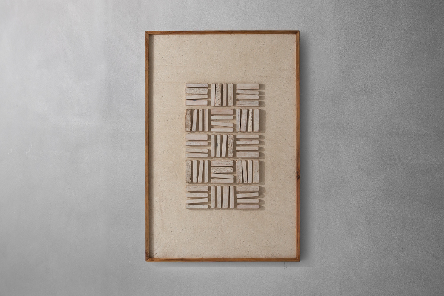 The Neela Wall Art embodies sophistication, featuring bold 3D geometric patterns that command attention. This piece, meticulously set within a reclaimed solid pine frame, speaks to refined taste and infuses any room with an air of modern artistry.