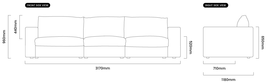 3170mm (L) x 1180mm (W) x 960mm (H) | Seat Height - 520mm