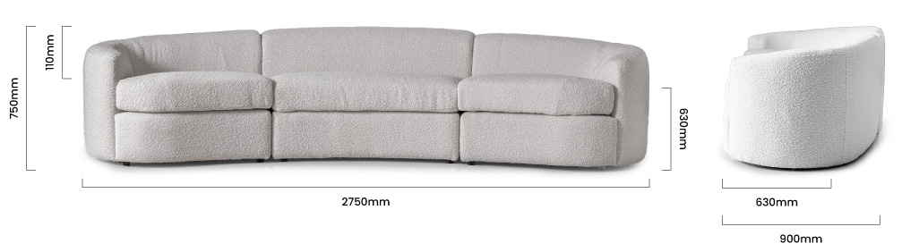 2750mm (L) x 900mm (W) x 750mm (H) | Seat Height - 630mm
