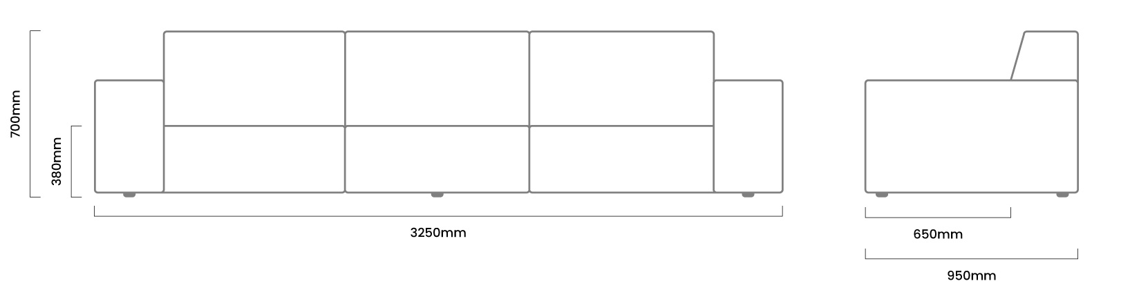 3250mm (L) x 950mm (W) x 700mm (H) - Seat Height - 380mm | Seat Depth - 650mm