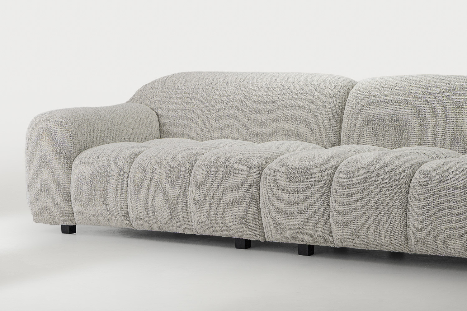 The Norhaven 4-Seater Couch delivers bold, expressive design and irresistible comfort. Upholstered in ultra-soft bouclé and finished in a warm ivory tone, this eye-catching couch brings an inviting and tactile feel to your space. With generous proportions, plush channel-stitched padding, and a sleek, low-profile silhouette, it delivers a contemporary aesthetic that’s both relaxed and refined.