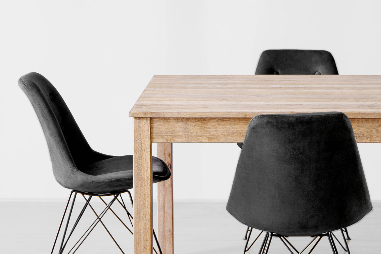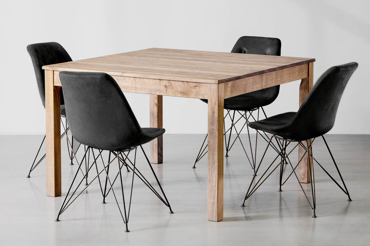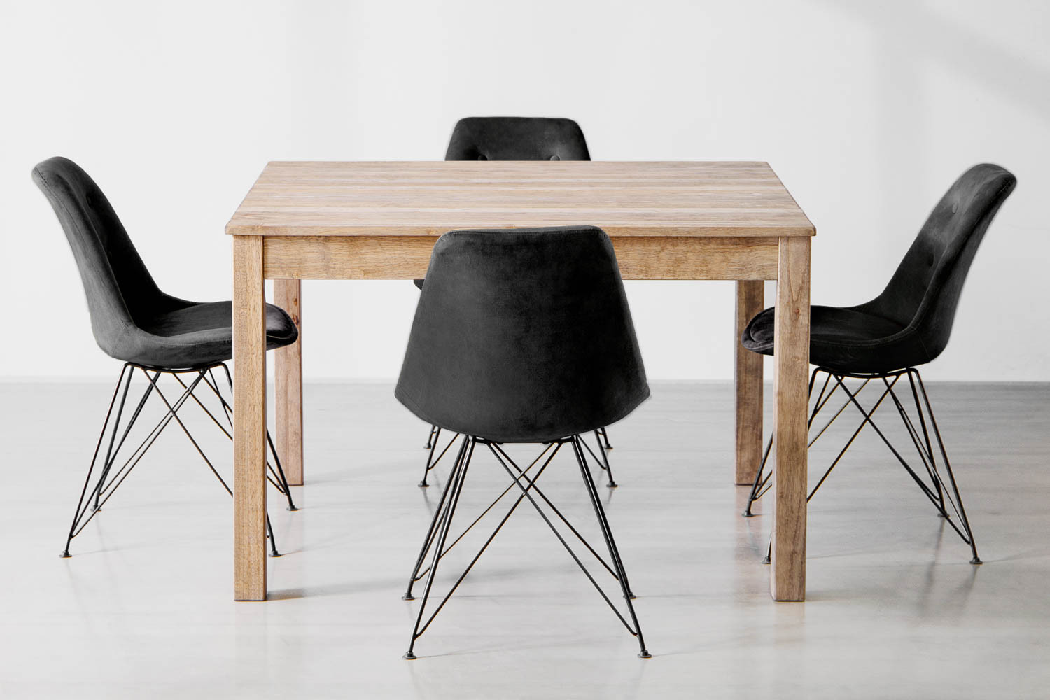 Material: Rubberwood Table and Polyester Velvet Chairs with Steel Legs