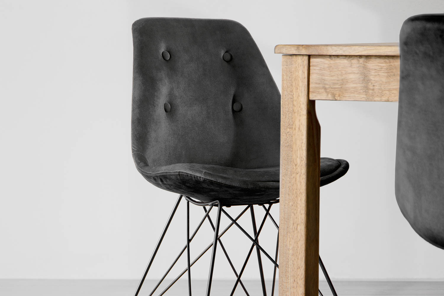 The supportive design of the Enzo’s plush seat padding upholstered in high-quality velvet with a vintage weathered finish gives these chairs a superbly comfortable and relaxing feel. The Steel Eiffel legs add a visually pleasing contrast while providing strong and durable support.