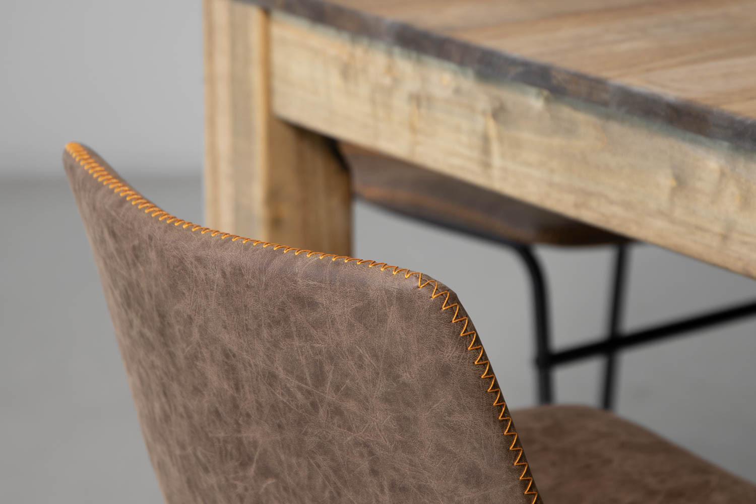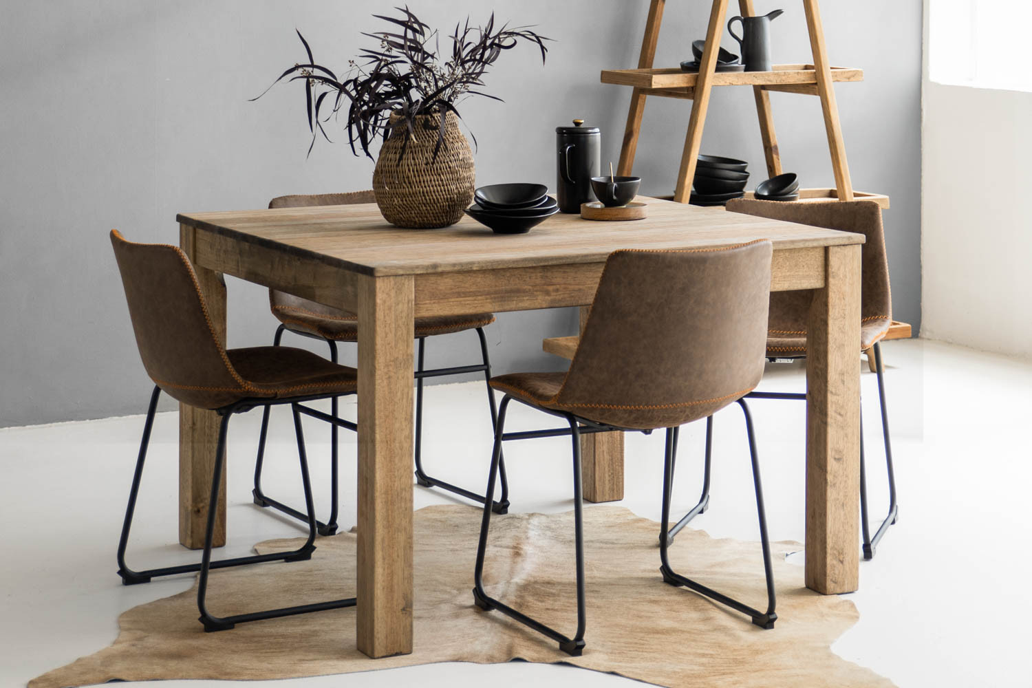 This contemporary look dining set means that you and your family can enjoy a versatile, comfortable, and yet aesthetically pleasing dining experience. The stylish chairs are available in storm grey, ginger, camel and ebony.