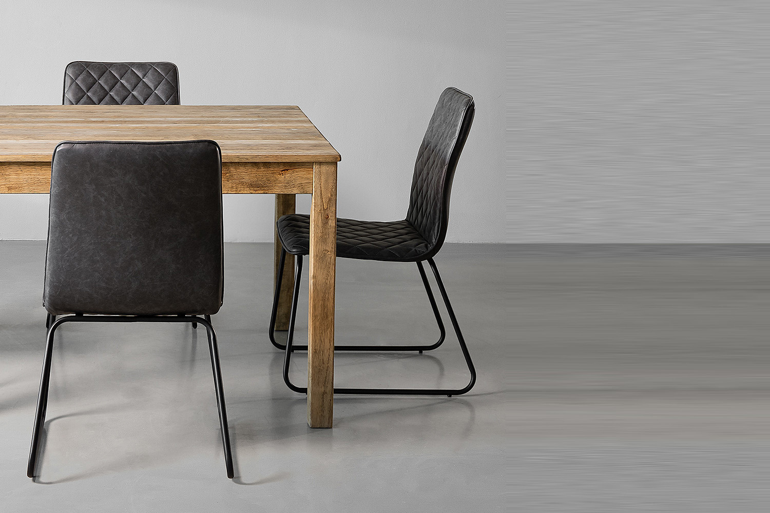 Table: Summer Oak | Dining Chair: Grey Seat with Black Legs