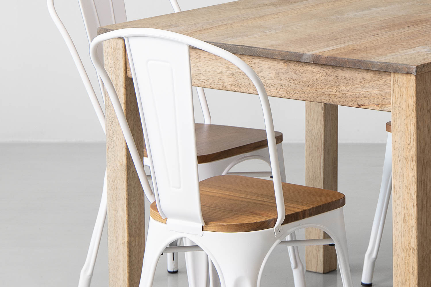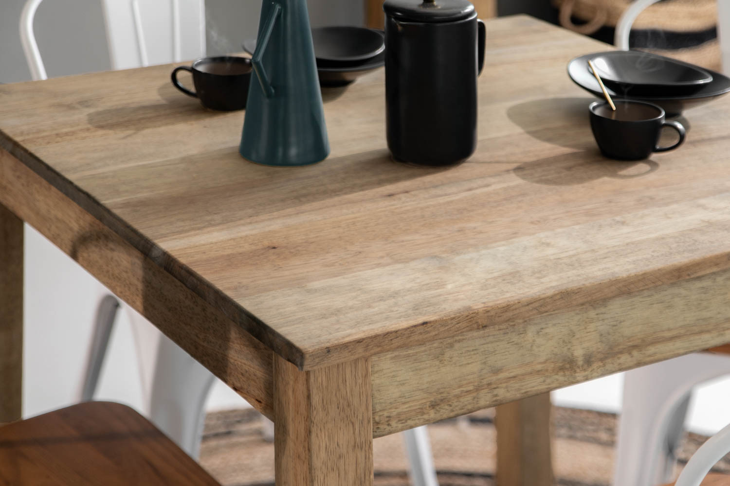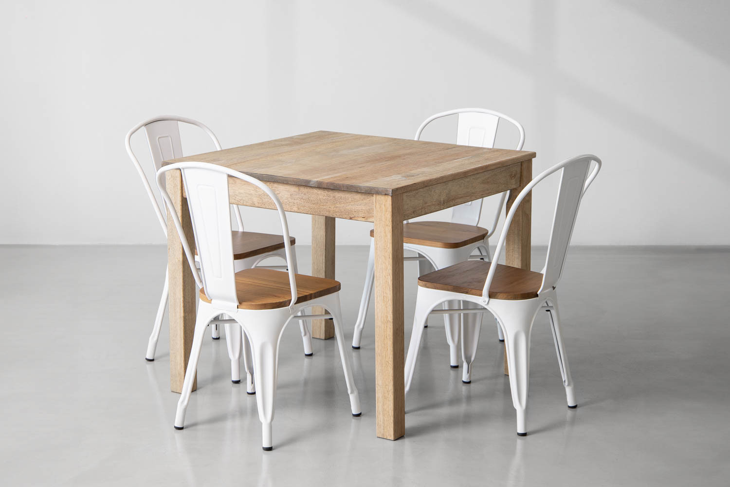 Create your own cafe culture with the urban-industrial style Montreal Odell Dining Set. Featuring a dining chair with a metal frame and Elmwood top, paired with a space-savvy Rubberwood dining table. This square four-seater set offers a durable and stylish gathering spot that will bring a friendly conversational atmosphere to any space.
