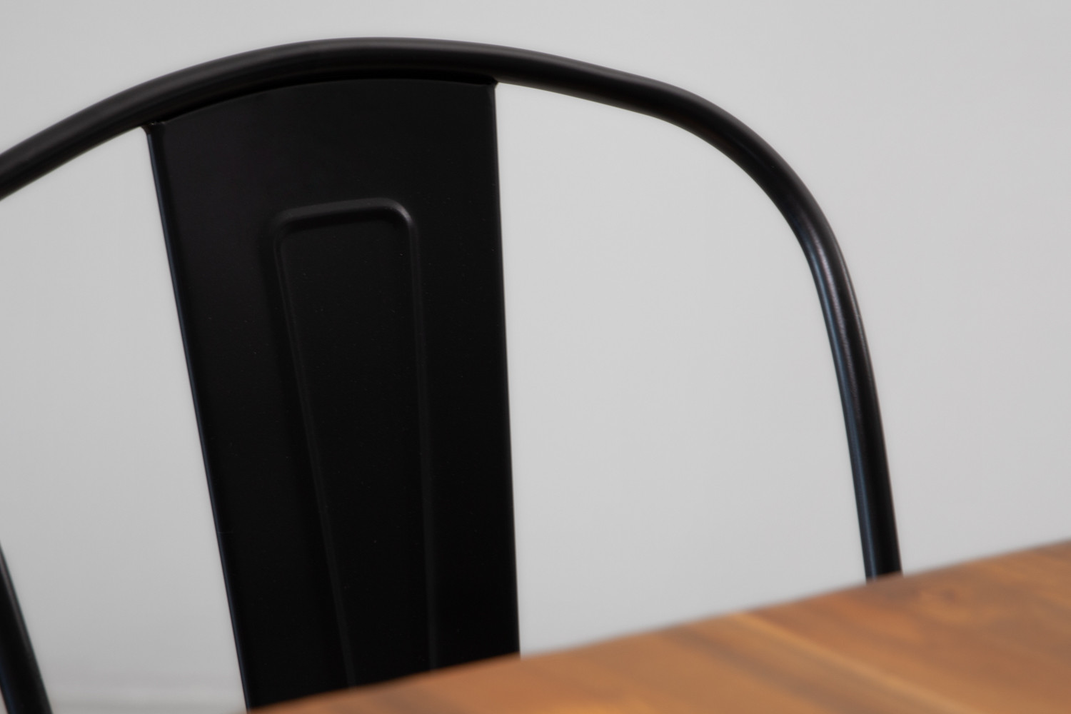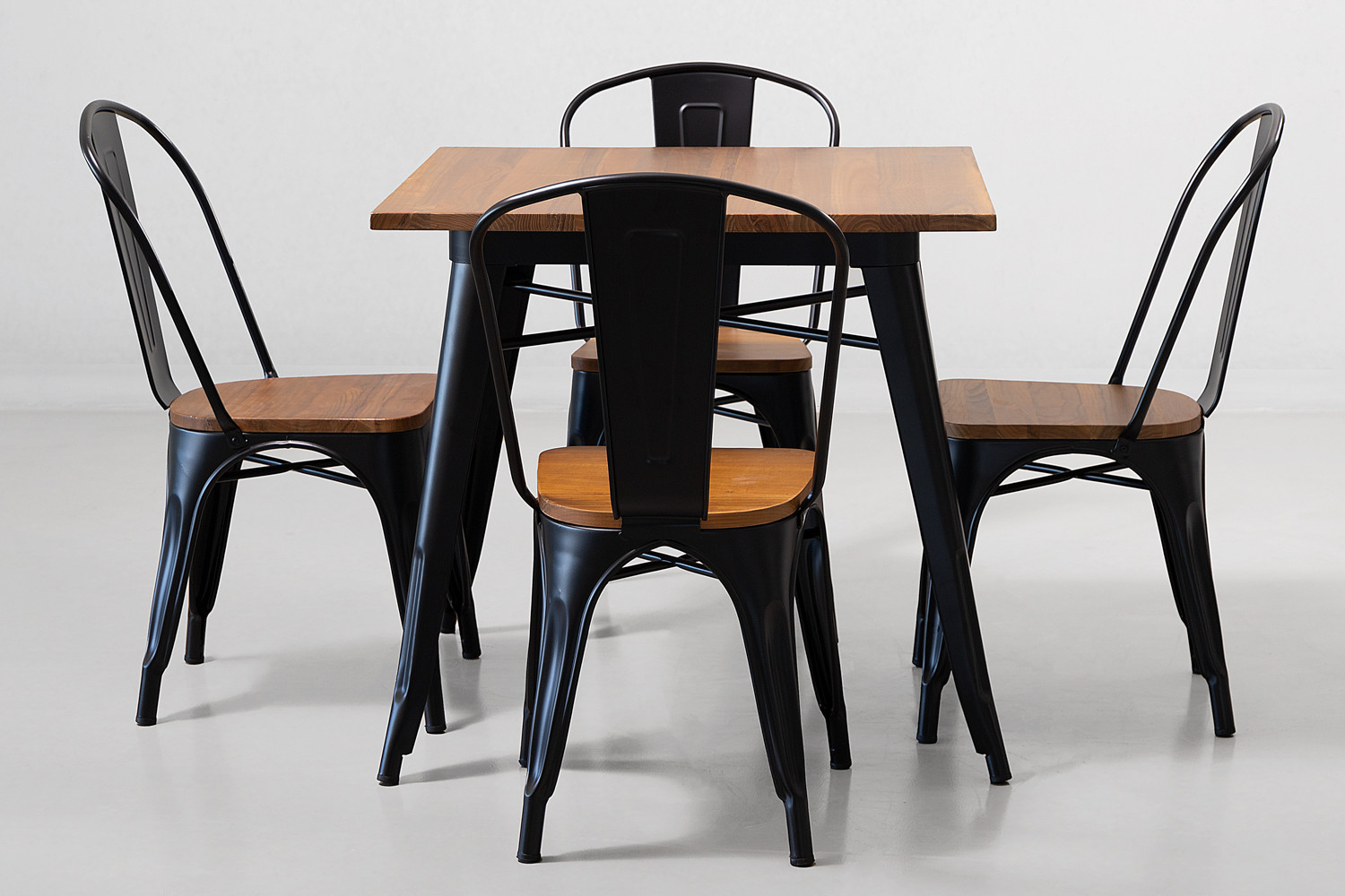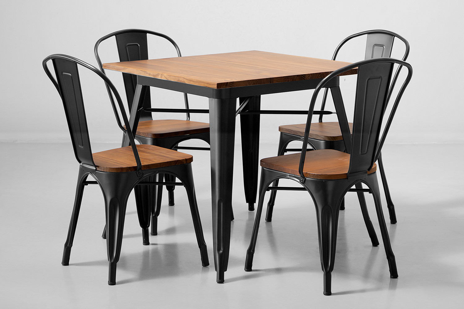 Bring some ‘al fresco’ café culture to your dining space with the charming Odell Dining Set. This contemporary dining set combines a solid top table with four cafe-style chairs which combine metal with Elm wood to present a beautifully modern design.