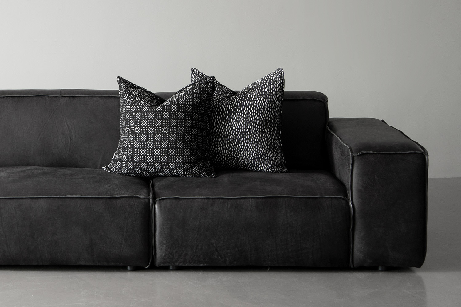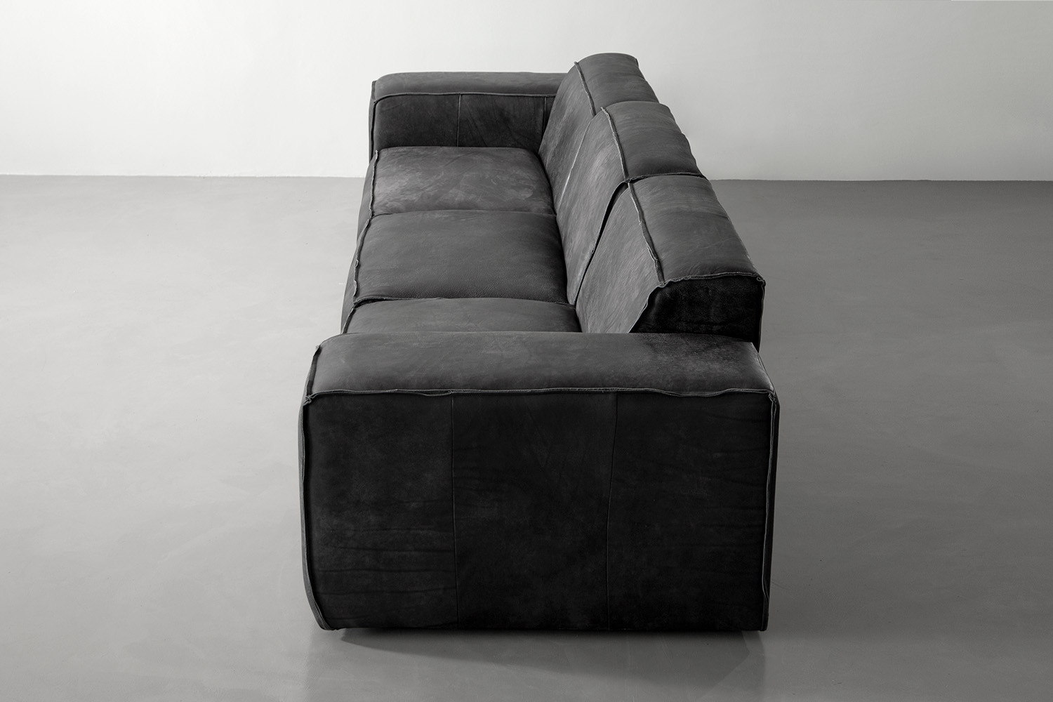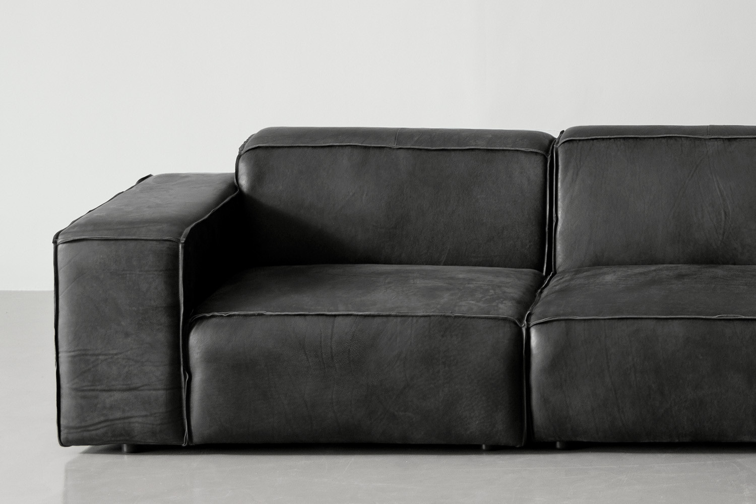 The Jagger Leather Modular 4-Seater Couch boasts a bold contemporary design with a square-like silhouette, keeping the design simple but striking. With plenty of style and space this modular couch is upholstered with luxurious Nubuck leather, finished with reversed stitched seams to keep a natural raw look with a warm feel.