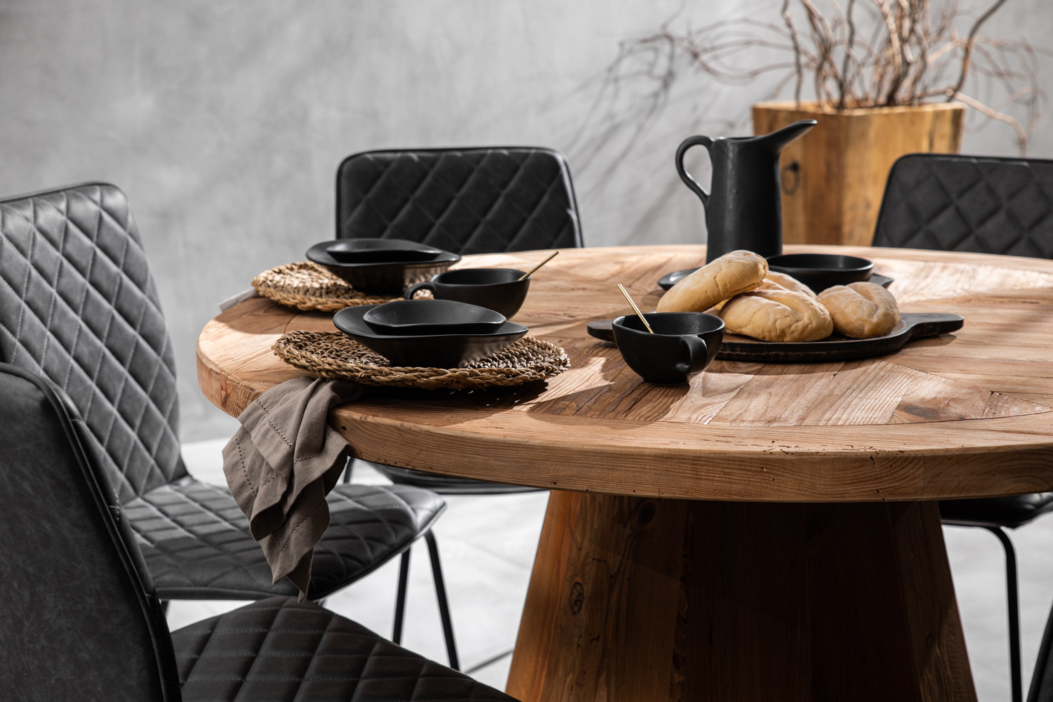The Gorm Jude 6-Seater Dining Set invites you to a comforting yet elegant dining spot. The Gorm is crafted from solid reclaimed wood, built for sustainability and durability, while the Jude adds a contemporary flair to your living room style.