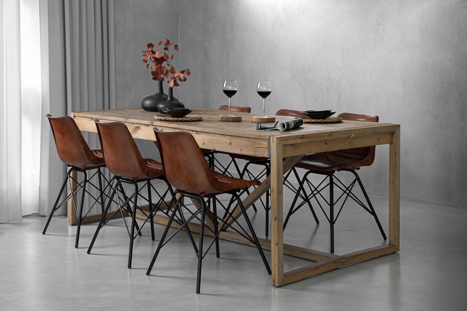 This ensemble is an all-round showcase for elegance. The 2.2m Kingston Dining Table accommodates six diners, charming them with clean lines and the rustic appeal of poplar wood. The table is accompanied by a set of six Ripley Dining Chairs, which introduce the luxury leather to elevate your dining space. This is sophisticated minimalism at its finest.