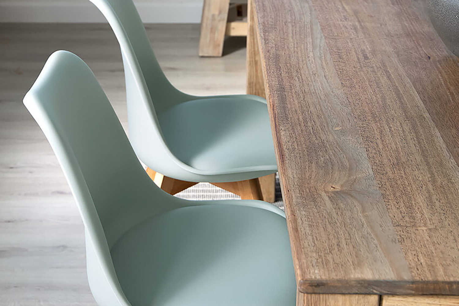 The combination of our Montreal Dining table and six Atom Dining Chairs brings a uniquely modern centre point to your dining room. Crafted from sustainable rubberwood, the Montreal Dining Table produces a warm and welcoming dining experience while the contemporary Atom Dining Chair, with its polypropylene seat and beechwood legs offers a sturdy and enjoyable seating experience.