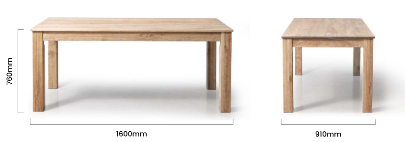- 1.6m table surface comfortably seats six